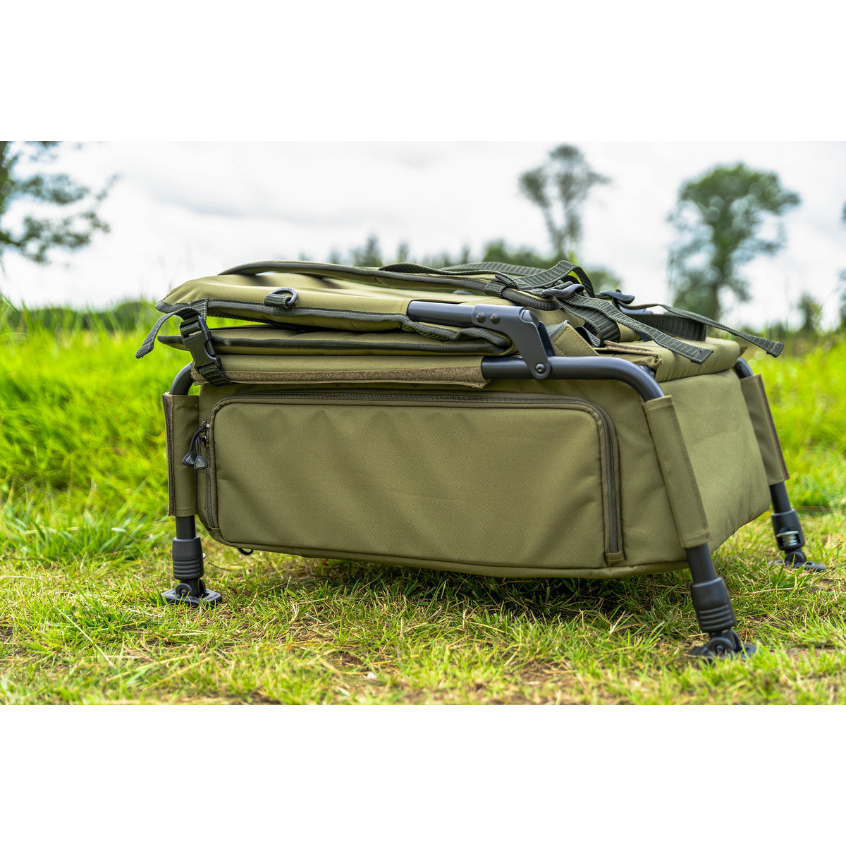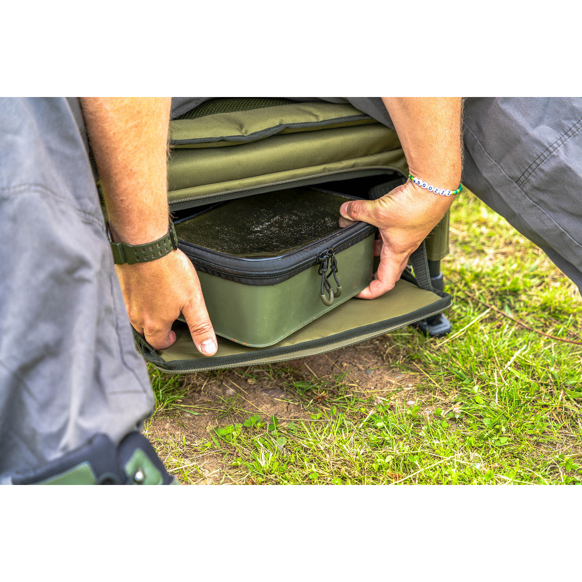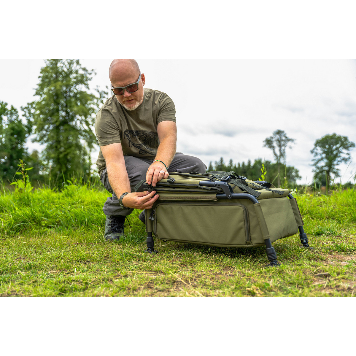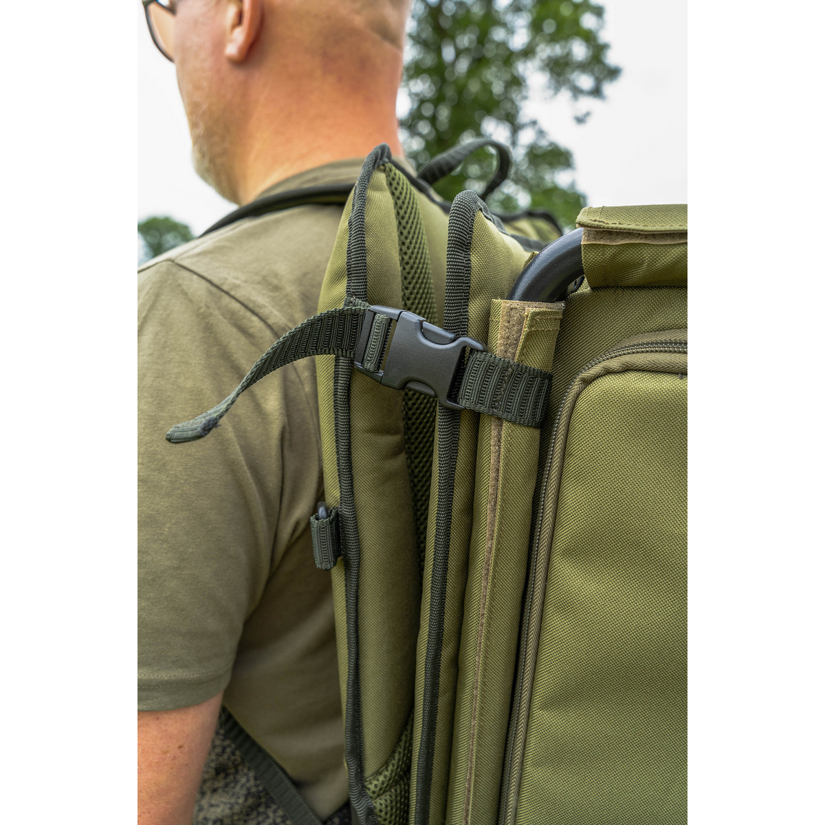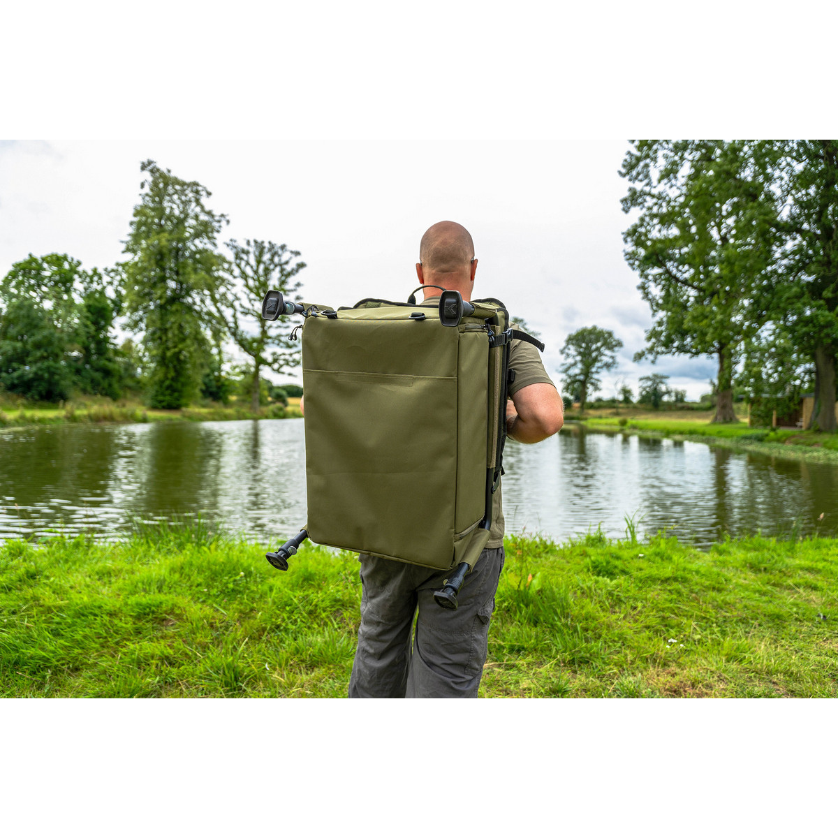 Krzesło Korum Progress Ruckchair - Standard K0300050 - Rewolucja w sposobie przenoszenia sprzętu wędkarskiego. Dzięki połączeniu wygodnego, lekkiego fotela z kompaktową torbą z płaskim dnem, Ruckchair może być przenoszony jak plecak. Dostęp do sprzętu wędkarskiego mamy bezpośrednio pod siedzeniem, tak jak wędkarze siedzący na koszu, ale bez ograniczeń związanych z jego masą i przenoszeniem. Torba umożliwia dostęp do zawartości z trzech stron, w tylnej części posiada kieszeń na podpórki i akcesoria do fotela. Zamykana na zatrzaski na czas transportu. Ramiączka plecaka posiadają regulowany pasek na piersi. Kolejnym udogodnieniem są pętle D do przenoszenia maty i siatki podbieraka. Ma również uchwyt do przenoszenia. 100% poliester. Aluminiowa rama. Masa: 4,75 kg.