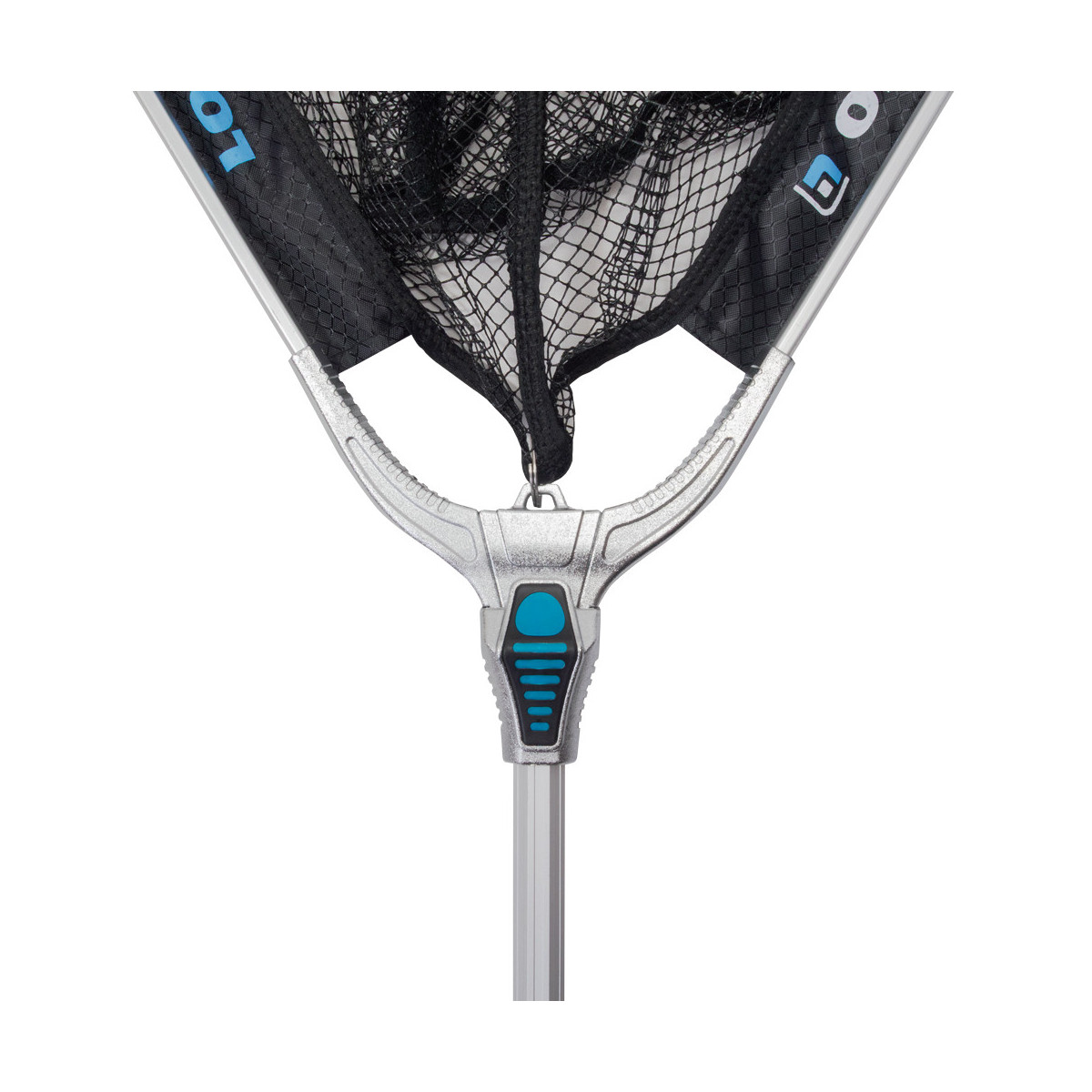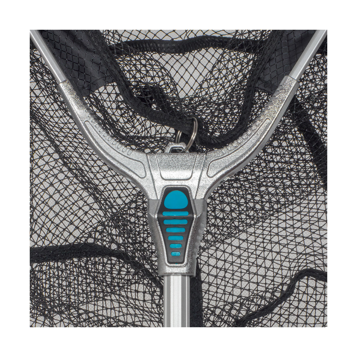 Ramiona kosza z duraluminium, zamek łączący kosz ze sztycą z metalu. Teleskopowa, lekka sztyca wykonana z wielokątnego duraluminium, zapewniająca dużą sztywność. Siatka z tworzywa pokrytego gumą (nie nasiąka wodą), oczko 6x6mm, przyjazna dla ryb, ogranicza uszkodzenia płetw i łusek.