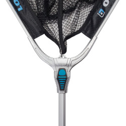Ramiona kosza z duraluminium, zamek łączący kosz ze sztycą z metalu. Teleskopowa, lekka sztyca wykonana z wielokątnego duraluminium, zapewniająca dużą sztywność. Siatka z tworzywa pokrytego gumą (nie nasiąka wodą), oczko 6x6mm, przyjazna dla ryb, ogranicza uszkodzenia płetw i łusek.
