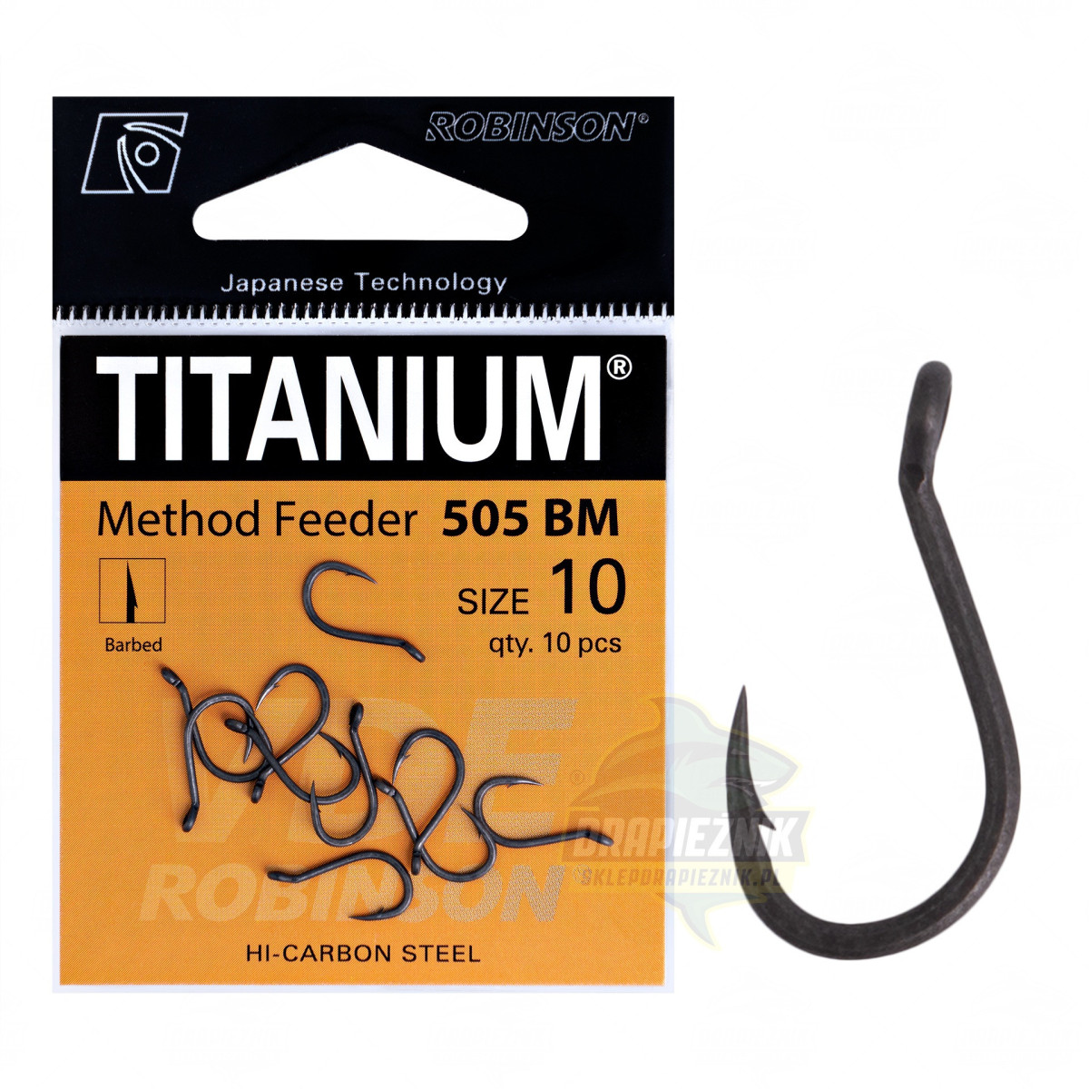 Haczyki VDE-Robinson Titanium Method Feeder 505BM - podwójnie wzmocnione kute haczyki z zadziorem oraz z oczkiem, charakteryzujące się klasycznym kształtem. Przeznaczone do prezentowania przynęt na włosie oraz do połowu największych ryb na method feeder. Wykonane przy wykorzystaniu najnowszej japońskiej technologii, która zapewnia wyjątkową ostrość, olbrzymią wytrzymałość na zginanie oraz odporność na stępienie.