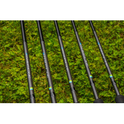 - 3.4m / 40g - wędzisko zaprojektowane do rzutów na odległość do 40 metrów. Wyróżnia się płynną, progresywną akcją, idealną do łowienia takich ryb jak np. leszcze. Wzmocniona sekcja środkowa zapewnia moc potrzebną do komfortowego zarzucania koszyczków zanętowych, przy jednoczesnym zachowaniu finezji wymaganej do skutecznego holowania ryb.
