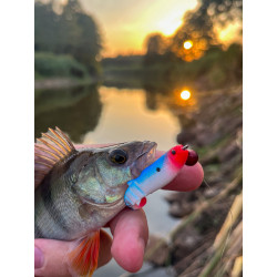 Klasyczny kolor. Daje czytelny punkt celowania w toni i nad dnem, dlatego dobrze nadaje się do szybkiego sprawdzania nowych miejsc i szybkiego „namierzania” okoni.