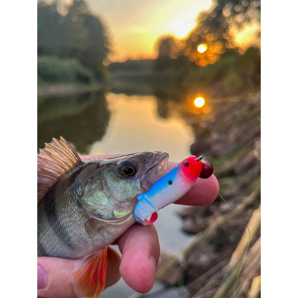 - Skuteczna guma na okonia — mały korpus, mocna akcja.