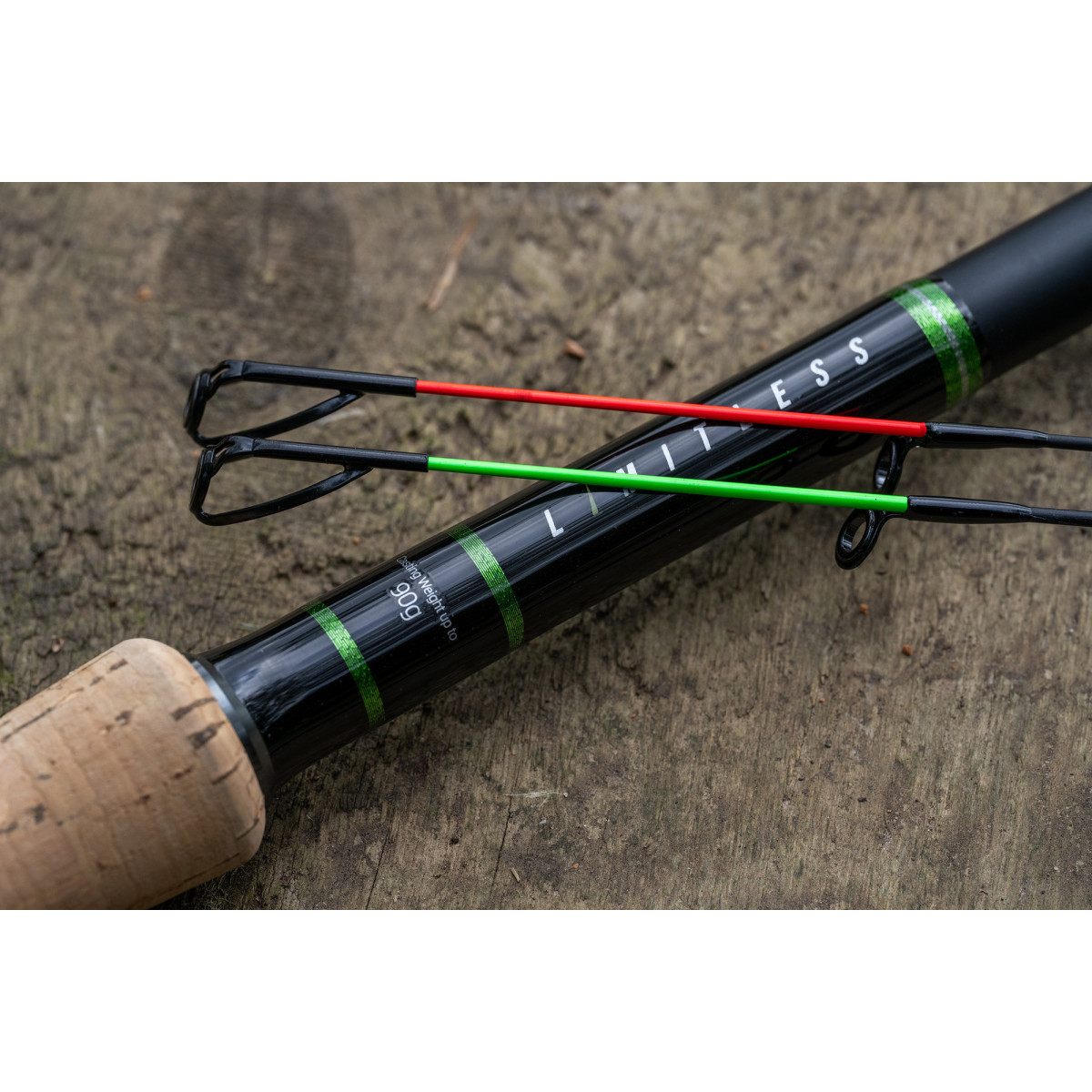 Wędka Korum Limitless - stworzona z myślą o rzucaniu ciężkich koszyków na duże odległości, gdzie liczy się precyzja i moc. Wyposażona w przelotki typu anti-frap, doskonale sprawdzające się zarówno przy żyłce, jak i plecionce, pełny uchwyt z korka oraz blank wykonany w technologii K-Flex z włókna węglowego, zapewniający progresywną akcję.