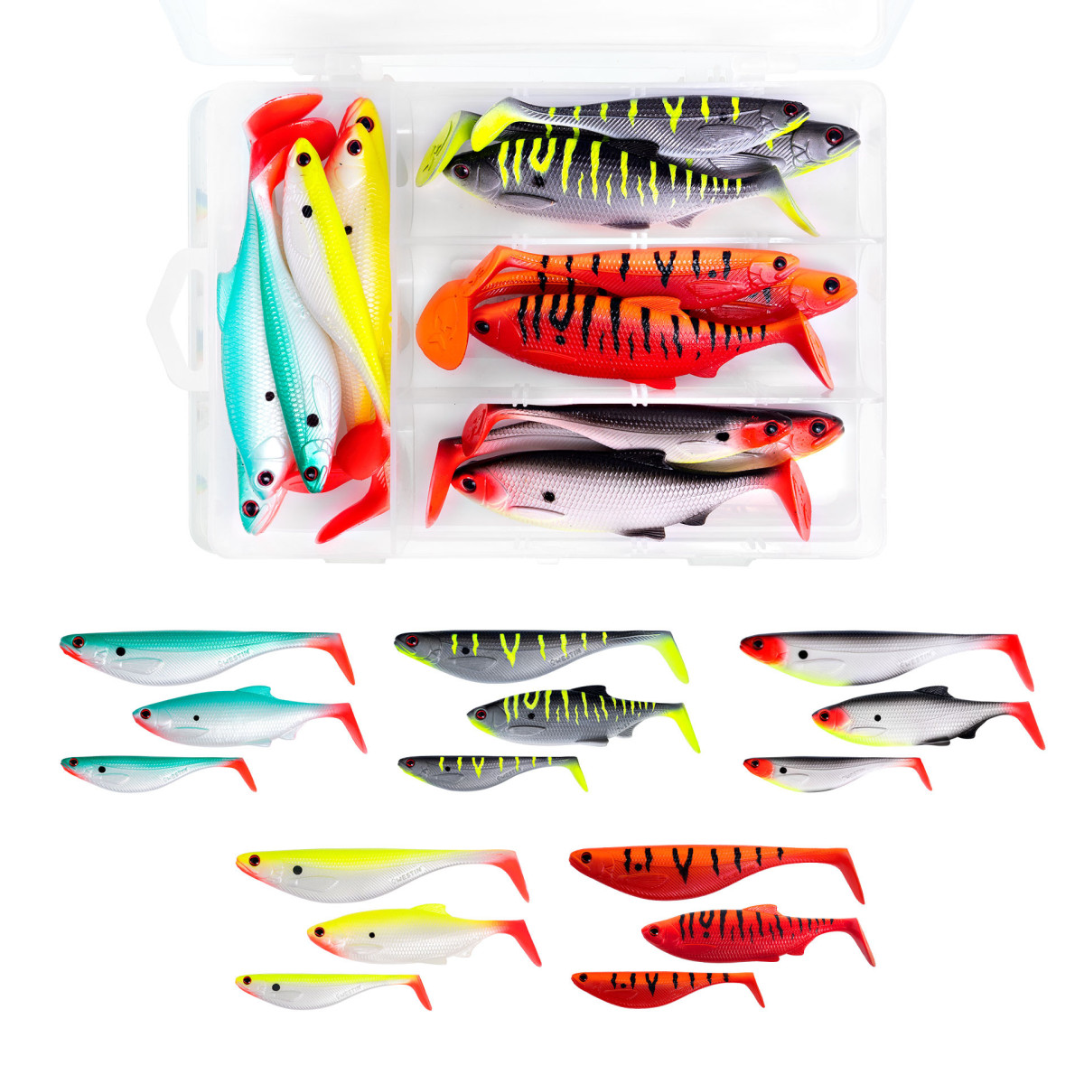 Nowy zestaw niezwykle łownych gum od firmy Westin w limitowanych kolorach z serii Dot Series. Zestaw zawiera 15 niezwykle łownych modeli gum Ricky the Roach oraz ShadTeez w w uniwersalnych rozmiarach - od 9 do 12cm, co umożliwia idealne dopasowanie się do warunków panujących na łowisku. Oprócz 15 gum, widocznych na zdjęciu, zestaw składa się także z praktycznego pudełka.