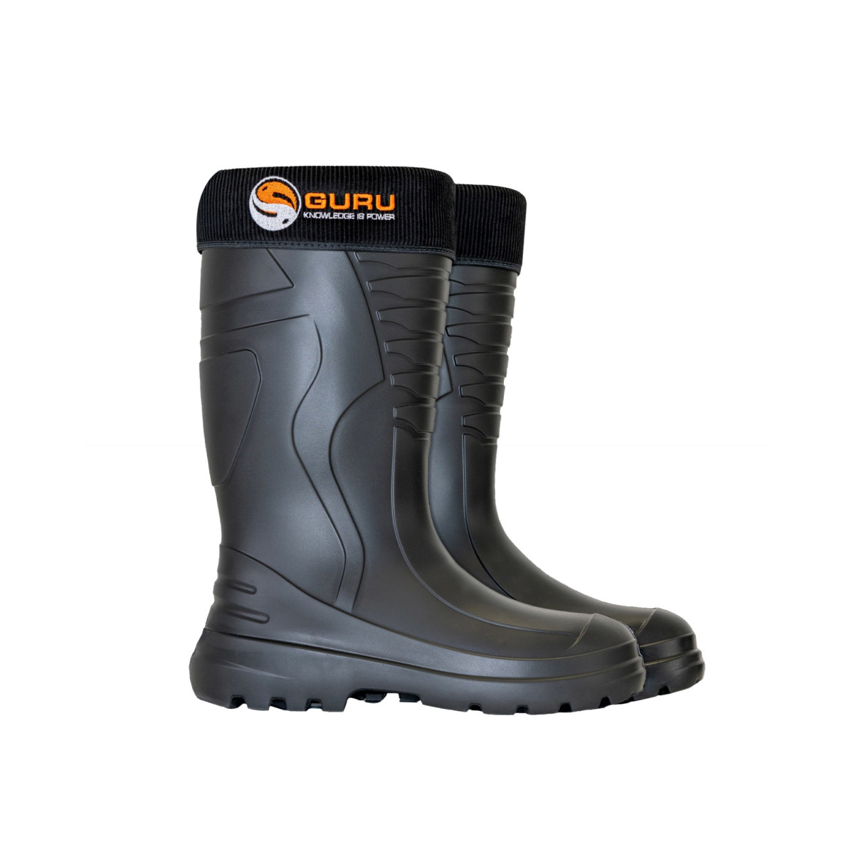 Buty Guru Wellies - obuwie to jeden z elementów wyposażenia, w którym od dawna chcieliśmy stworzyć produkt wysokiej jakości – szczególnie z myślą o chłodniejszych miesiącach oraz typowej, mokrej pogodzie, która często towarzyszy wędkarzom. Dlatego z dużą satysfakcją prezentujemy najnowsze kalosze Guru. Wykonano je z najwyższej jakości materiału EVA, dzięki czemu są lekkie, elastyczne i bardzo wygodne, a przy tym wyjątkowo trwałe oraz dobrze izolujące termicznie. Podeszwa antypoślizgowa z głębokim bieżnikiem zapewnia doskonałą przyczepność, co ma ogromne znaczenie podczas poruszania się po mokrych i śliskich brzegach czy pomostach. Komfort i utrzymanie ciepła zwiększa wbudowana amortyzacja, która zapewnia wygodę przez cały dzień nawet przy niskich temperaturach. W zestawie znajdują się lekkie, izolowane, wyjmowane wkładki wykonane w 100% z poliestru, co ułatwia ich czyszczenie i suszenie. Szeroki otwór ułatwia zakładanie i zdejmowanie, a przy tym świetnie sprawdzi się u osób z większą łydką. Buty wyróżniają się atrakcyjnym wyglądem oraz charakterystycznymi detalami Tackle Guru. Produkowane w Europie, dostępne są w rozmiarach 41–47.