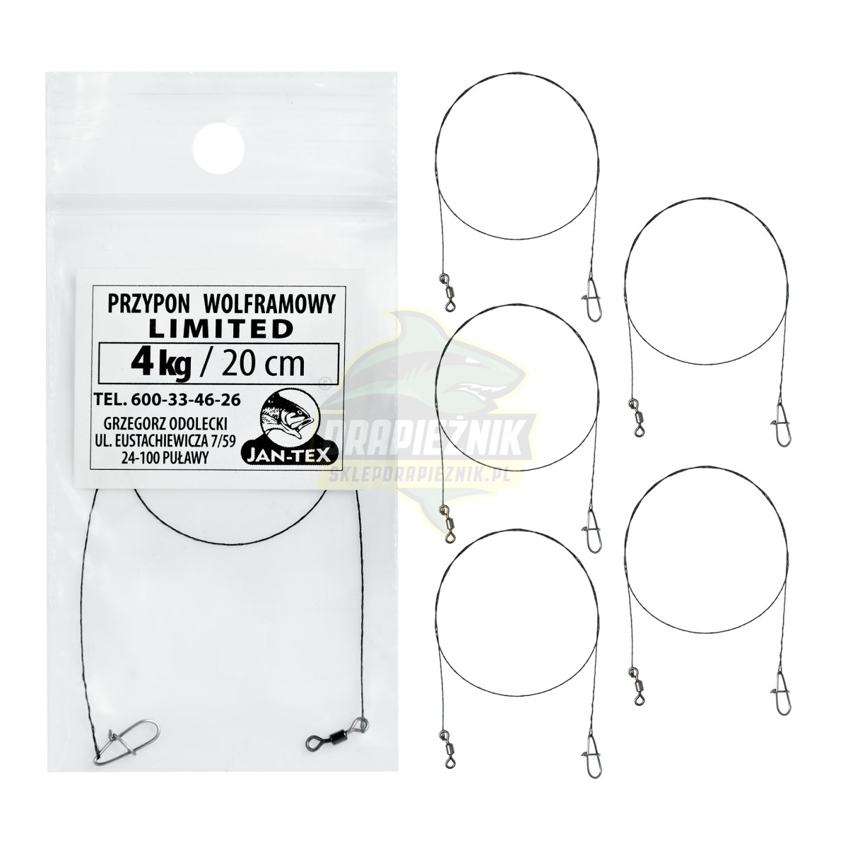 Przypony wolframowe Jan-Tex - LIMITED 20cm/4kg (5 SZTUK)