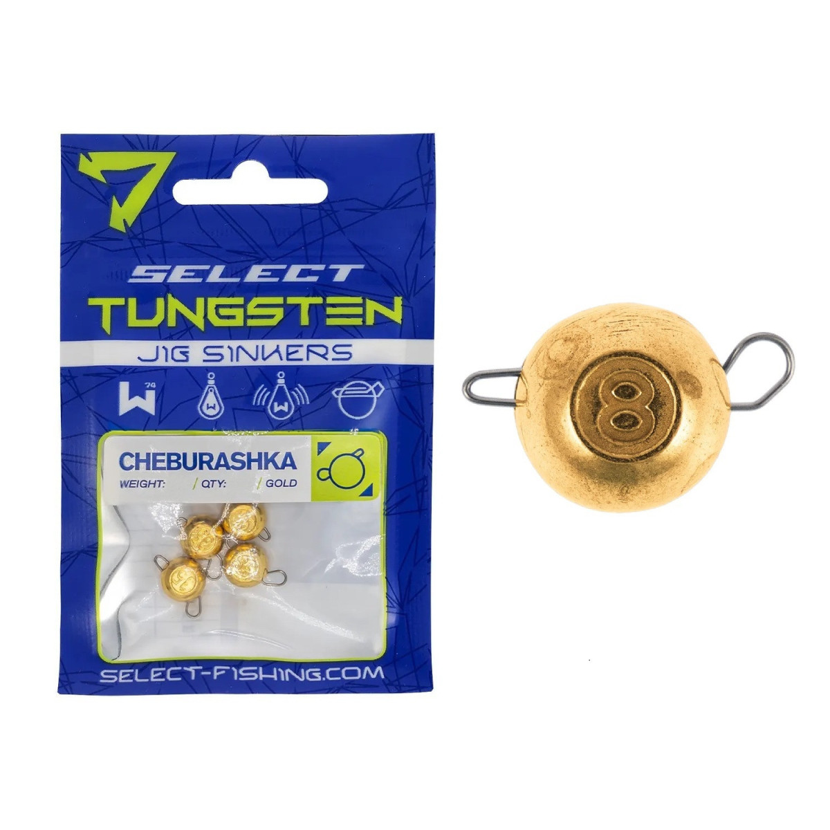 Czeburaszki wolframowe Select GOLD - wysokiej jakości, precyzyjnie wykonane czeburaszki w złotej wersji kolorystycznej. Charakteryzują się gładką powierzchnią, skupionym ciężarem oraz odpowiednią twardością. Stanowią niezbędny element wyposażenia podczas okoniowych wypraw. Dzięki większej masie własnej wolframu, posiadają lepsze właściwości rzutowe niż tradycyjne czeburaszki.