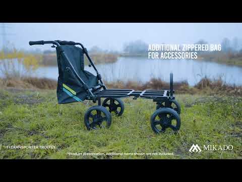 Wózek Mikado T1 Transporter - komfortowy wózek z obszerną platformą o regulowanej długości oraz pojemną torbą. Bez problemu zmieści duży kosz z całym osprzętem. Posiada również wygodną regulację wysokości rączek i kompaktowe rozmiary transportowe.