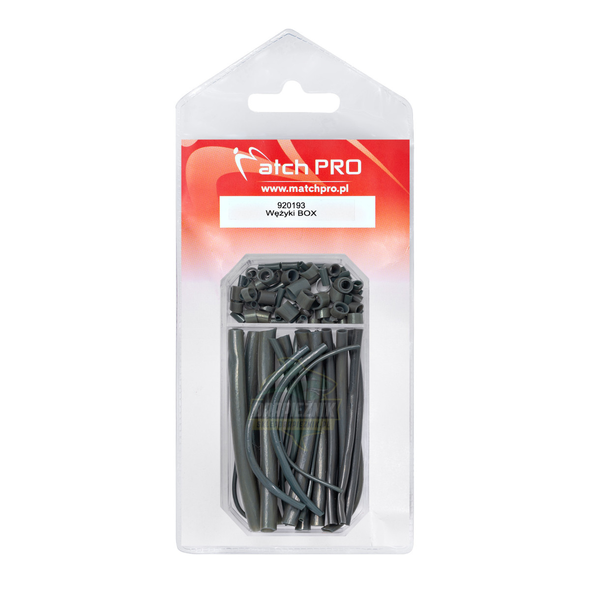 Wężyki MatchPro do spławików 920193 - zestaw koszulek do montażu spławika na żyłce. W pudełku znajduje się kilka rozmiarów i długości koszulek także z pewnością dopasujemy odpowiednią na każdy kil.