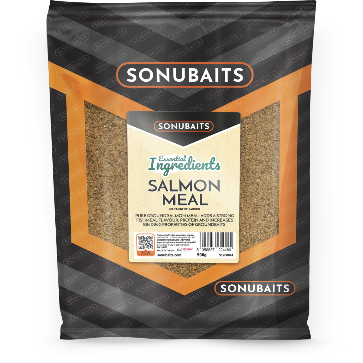 Dodatek do zanęt Sonubaits Essential Ingredients 500g - Salmon Meal - czysta mączka z mielonego łososia, która dodaje wyrazistego smaku mączki rybnej, białka i zwiększa właściwości wiążące zanęt.
