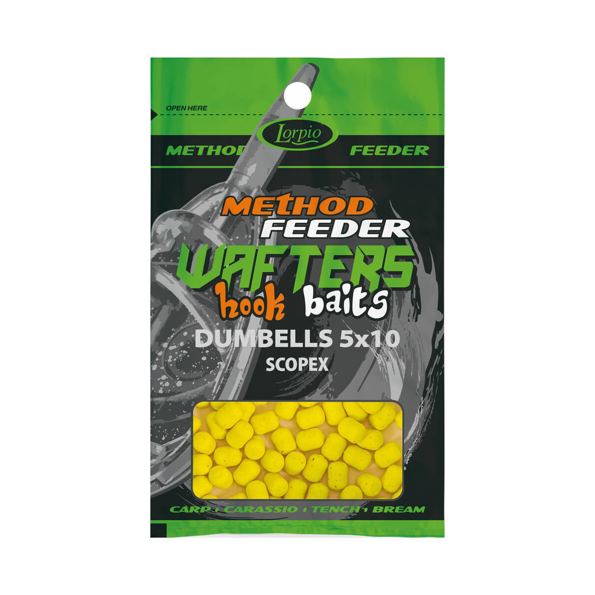 Przynęty Lorpio Wafters Hook Baits Dumbells - aromatyzowane, w kolorach fluo. Trwałe, nie pękają przy zakładaniu na włos, nie wymagają wstępnego nawiercania. Szczególnie skuteczne na łowiskach komercyjnych na karpie, karasie, liny, leszcze. Coraz częściej stosowane w rzekach na jazie, klenie, brzany.