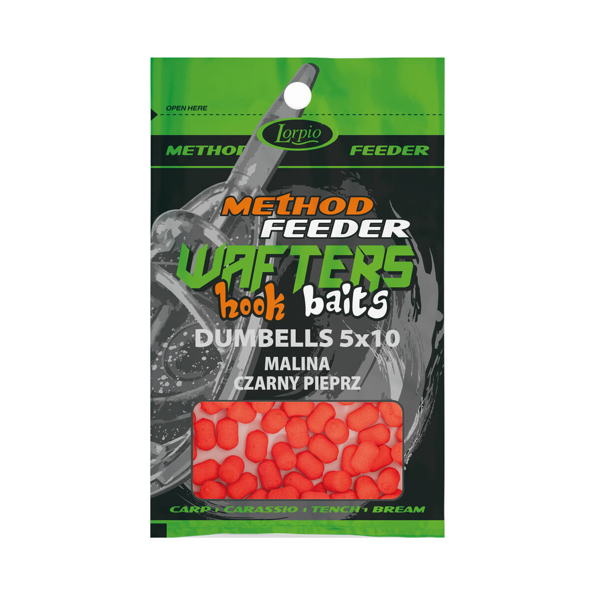 Przynęty Lorpio Wafters Hook Baits Dumbells - aromatyzowane, w kolorach fluo. Trwałe, nie pękają przy zakładaniu na włos, nie wymagają wstępnego nawiercania. Szczególnie skuteczne na łowiskach komercyjnych na karpie, karasie, liny, leszcze. Coraz częściej stosowane w rzekach na jazie, klenie, brzany.