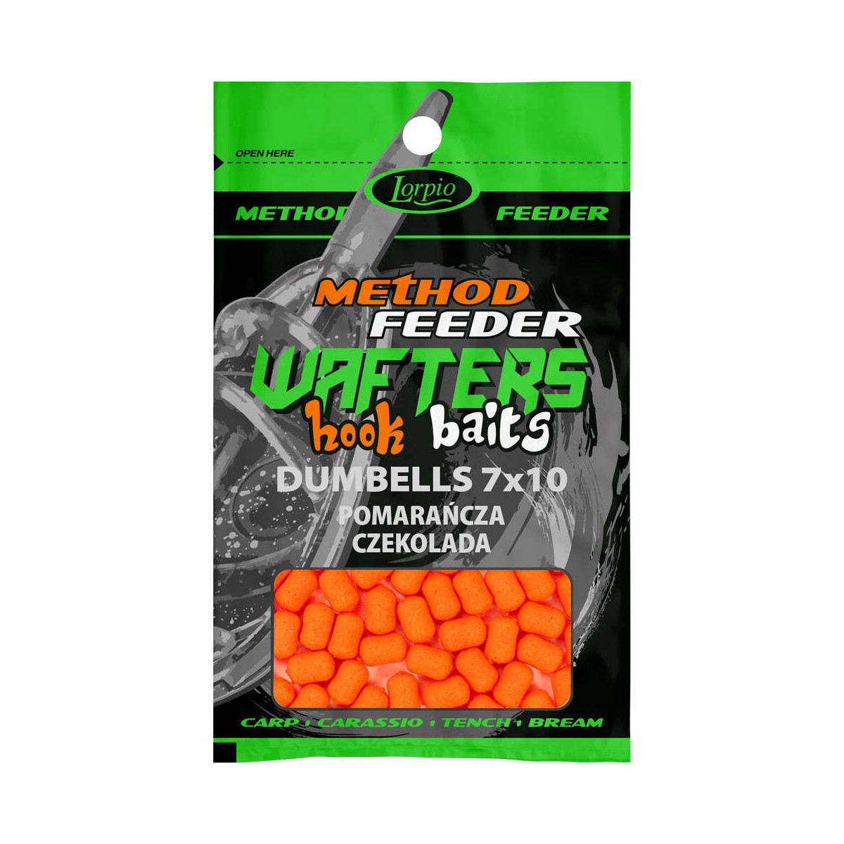 Przynęty Lorpio Wafters Hook Baits Dumbells - aromatyzowane, w kolorach fluo. Trwałe, nie pękają przy zakładaniu na włos, nie wymagają wstępnego nawiercania. Szczególnie skuteczne na łowiskach komercyjnych na karpie, karasie, liny, leszcze. Coraz częściej stosowane w rzekach na jazie, klenie, brzany.