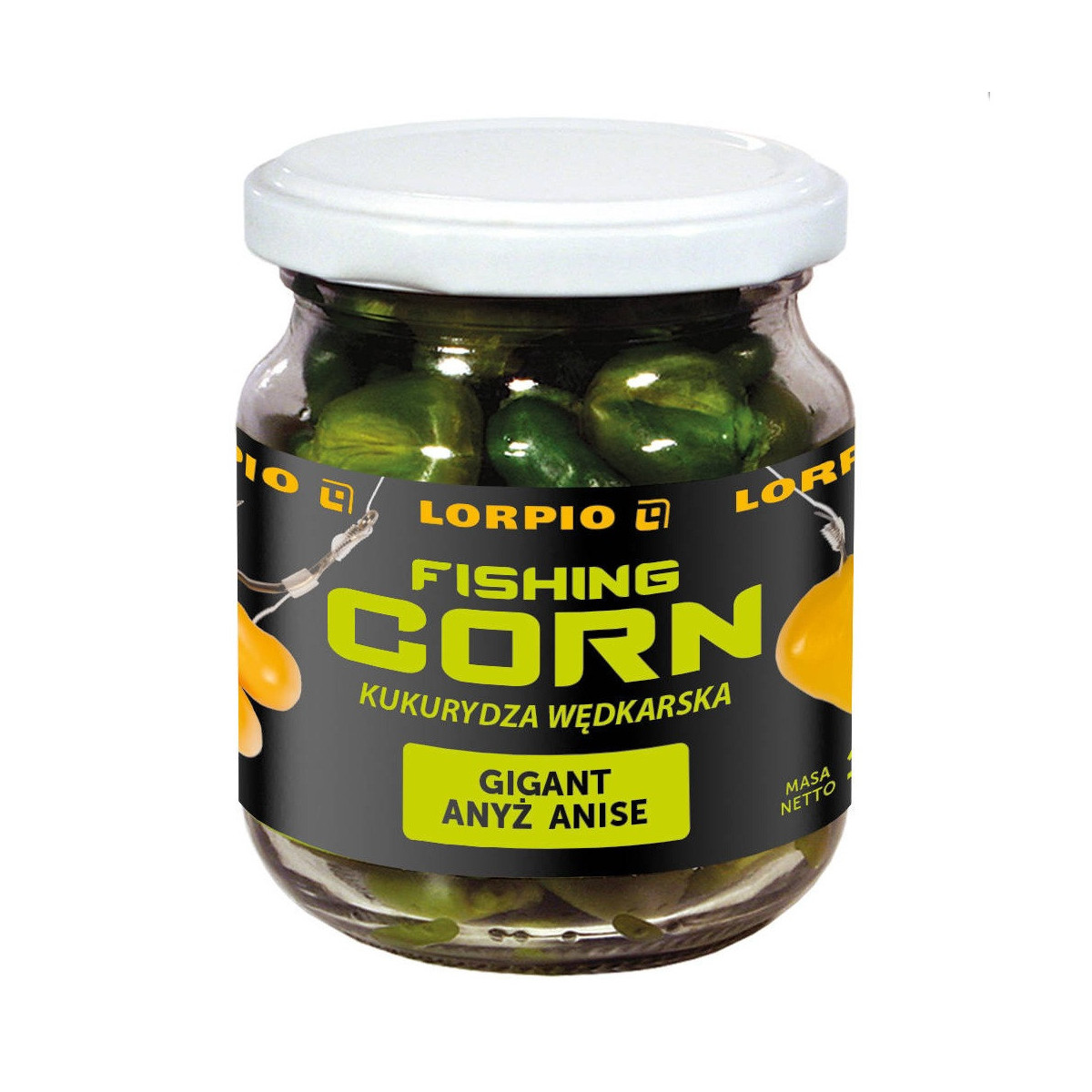 Kukurydza Lorpio gigant 125g - aromatyzowana i barwiona kukurydza gigant nadaje się do połowu dużych ryb – karpi i amurów. Z powodzeniem może być wykorzystywana w metodzie włosowej.