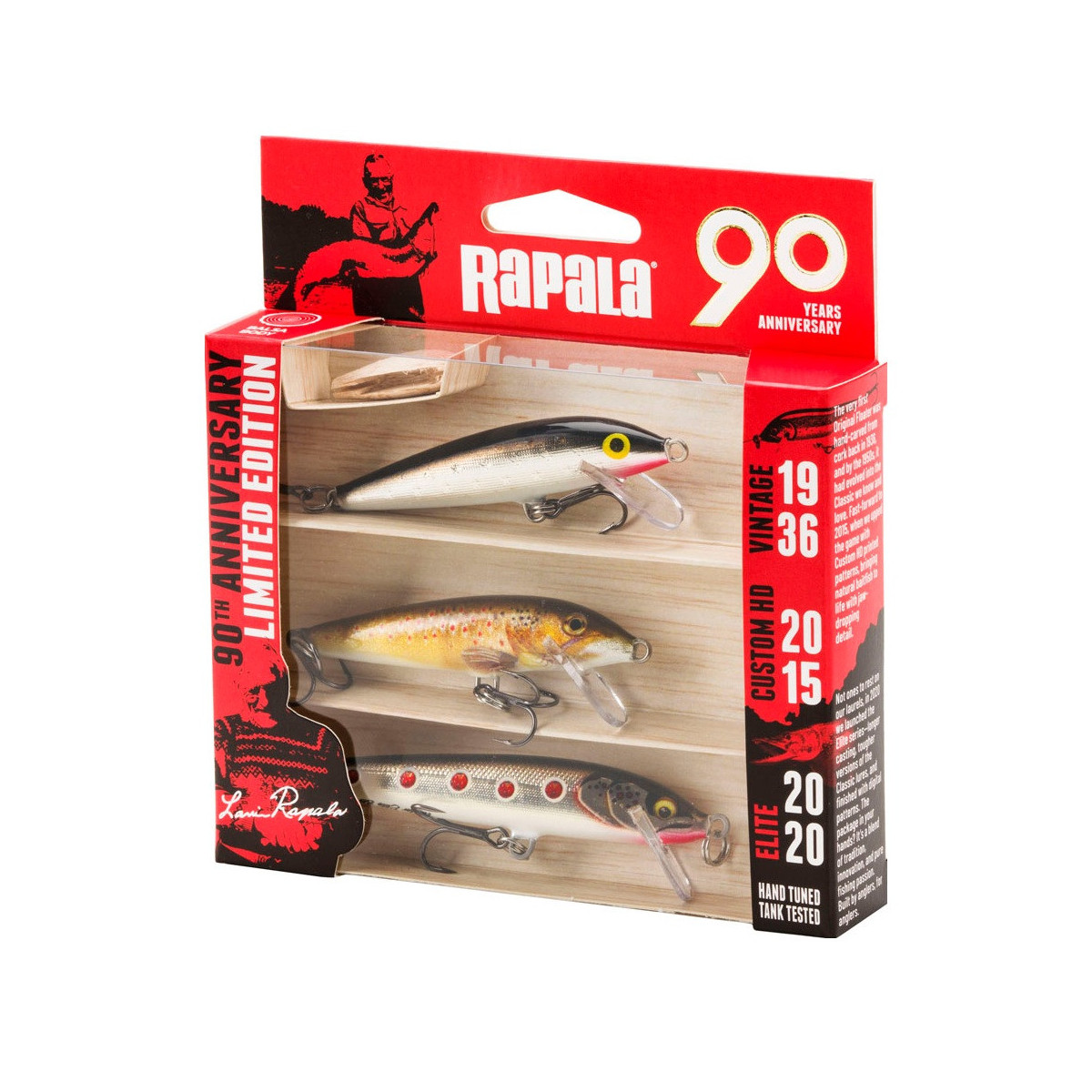 Zestaw Rapala 90 Years Lure Kit - FSN / Floater Small Naturistic - z okazji 90-lecia marki Rapala przygotowano zestaw Vintage Lure Kit, stworzony z myślą o łowieniu pstrągów i okoni. Zestaw zawiera 3 kultowe przynęty, reprezentujące różne kluczowe etapy w historii firmy Rapala. Korpusy wszystkich woblerów zostały wykonane z drzewa balsowego. Rapala świętuje 90 lat pasji i doskonałości w wędkarstwie, prezentując ten ekskluzywny zestaw w limitowanej edycji, będący hołdem dla historii marki. Zestaw ten odzwierciedla najlepsze cechy wzornictwa, innowacji i zaangażowania w ochronę środowiska, które charakteryzują firmę Rapala od prawie wieku. Zestaw zawiera 3 modele, reprezentujące różne etapy ewolucji przynęt Rapala: