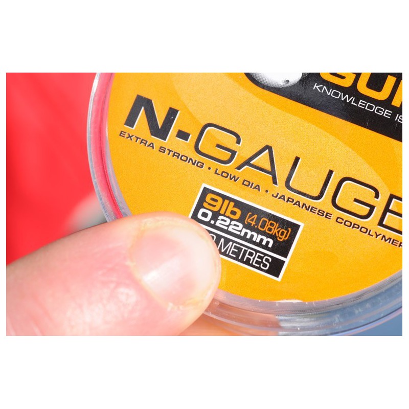 Żyłka Guru N-Gauge 100m - wysokiej jakości żyłka oferowana w 100m szpulach, która jest wyjątkowo mocna. Jej średnica i wytrzymałość na zerwanie są precyzyjnie określone. Została zaprojektowana do wykonywania przyponów i zestawów spławikowych podczas łowienia na tyczkę, sprawdzi się także jako żyłka główna do delikatnych zestawów z wagglerem. Charakteryzuje się bardzo wysoką wytrzymałością w stosunku do średnicy oraz niezwykłą odpornością na przetarcia.