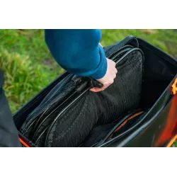 Torba Guru Fusion EVA Net Bag MKII to praktyczne rozwiązanie do przechowywania i transportu siatek, podbieraków oraz większych akcesoriów wędkarskich. Pozwala pomieścić do czterech 3-metrowych siatek i podbieraków. Komora główna Guru Fusion EVA Net Bag MKII oferuje maksymalną wodoszczelność, dzięki czemu nie będzie już problemu z transportem mokrego bagażu. Regulowana kieszeń na przodzie z rzepem jest idealna na tacki na przynęty, akceptując nawet bardzo duże tace boczne. To wygodne, nowoczesne i funkcjonalne rozwiązanie dla każdego wędkarza.