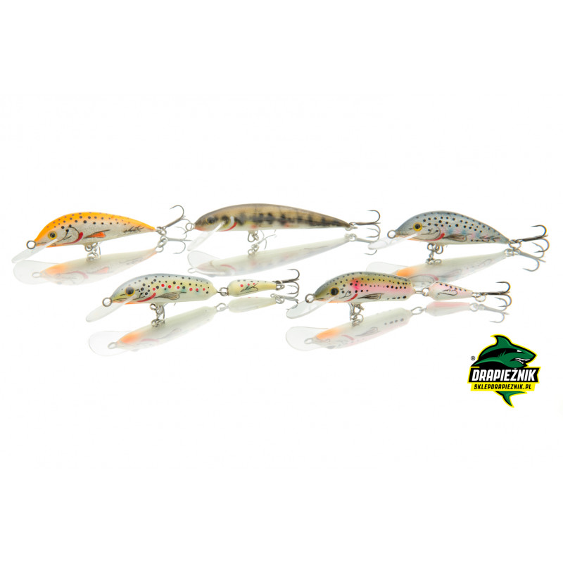 Pstrągowy, 5-centymetrowy klasyk. Niesamowicie skuteczne przynęty wykonane przez prawdziwego fanatyka wędkarstwa - Piotra Mołdocha. Tych produktów nie trzeba przedstawiać nikomu - perfekcja widoczna w każdym calu, skuteczność potwierdzona przez setki wędkarzy.