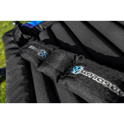Fotel osadzony jest na solidnej, kwadratowej ramie opartej na profilu nóg 36mm (koło), zaś za wygodę odpowiada regulowane oparcie z doskonale układającym się pod obciążeniem materacem siedziska. Dodatkowym atutem produktu jest praktyczność – w prosty sposób można go złożyć i przygotować do transportu, a jak wszyscy dobrze wiemy – czas spędzony nad wodą jest niezwykle cenny. Dzięki wyjmowanym nogom, które można schować za pomocą przytwierdzonych pasków, Absolute 36 staje się kompaktowym krzesłem. W zestawie znajduje się również zakładany na ramię pas transportowy. Absolute 36 Feeder Chair ma wiele zalet, jednak najważniejszym aspektem tego krzesła jest wszechstronna możliwość rozbudowy o wszelakie akcesoria wędkarskie typu „feeder army”, tacki, półki oraz uchwyty oparte na okrągłym profilu 36mm.