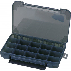 VS-3043ND Pudełko Versus VS-3043ND TRANSPARENT - 35.6x23x5cm - seria bardzo pojemnych pudeł, które zmieszczą się w średniej wielkości torbie lub plecaku. Modele ND i ND-2 to niemal bliźniacze pudełka, różniące się tylko rozmieszczeniem przegród. Możliwość ustawienia ścianki co 0,5 cm daje niemal nieograniczone możliwości konfiguracji wnętrza. Model oznaczony NDD to pudło o zwiększonej głębokości (8 cm). Będzie doskonałym wyborem do przechowywania dużych i średnich woblerów. Pudła z serii „3043” mają wygodne i pewne zapięcia typu „One Hand” pozwalające na otwieranie i zamykanie pudła jedną ręką. Wszystkie pudła są dostępne w kolorze ciemnoszarym lub w opcji transparentnej.