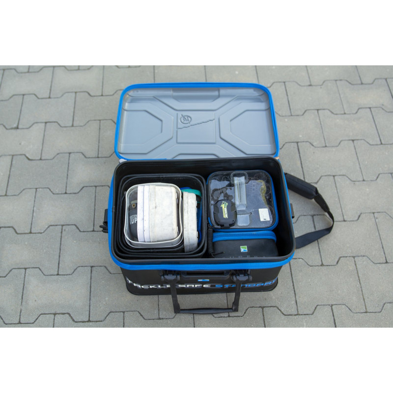 Torba Preston Hardcase Tackle Safe to niezwykle uniwersalny produkt z dziedziny bagażu wędkarskiego w którym można przechowywać dosłownie wszystko zaczynając od zanęty po najdrobniejsze akcesoria. Torba wykonana jest z wytrzymałego materiału EVA, dzięki czemu jest łatwa w utrzymaniu czystości. Torba Preston Hardcase Tackle Safe posiada twardą pokrywę usztywniającą całą konstrukcję, zapewniając dodatkową ochronę dla przechowywanego asortymentu. Mocny, składany uchwyt oraz wygodny pas na ramię znacząco ułatwiają transport torby Hardcase.