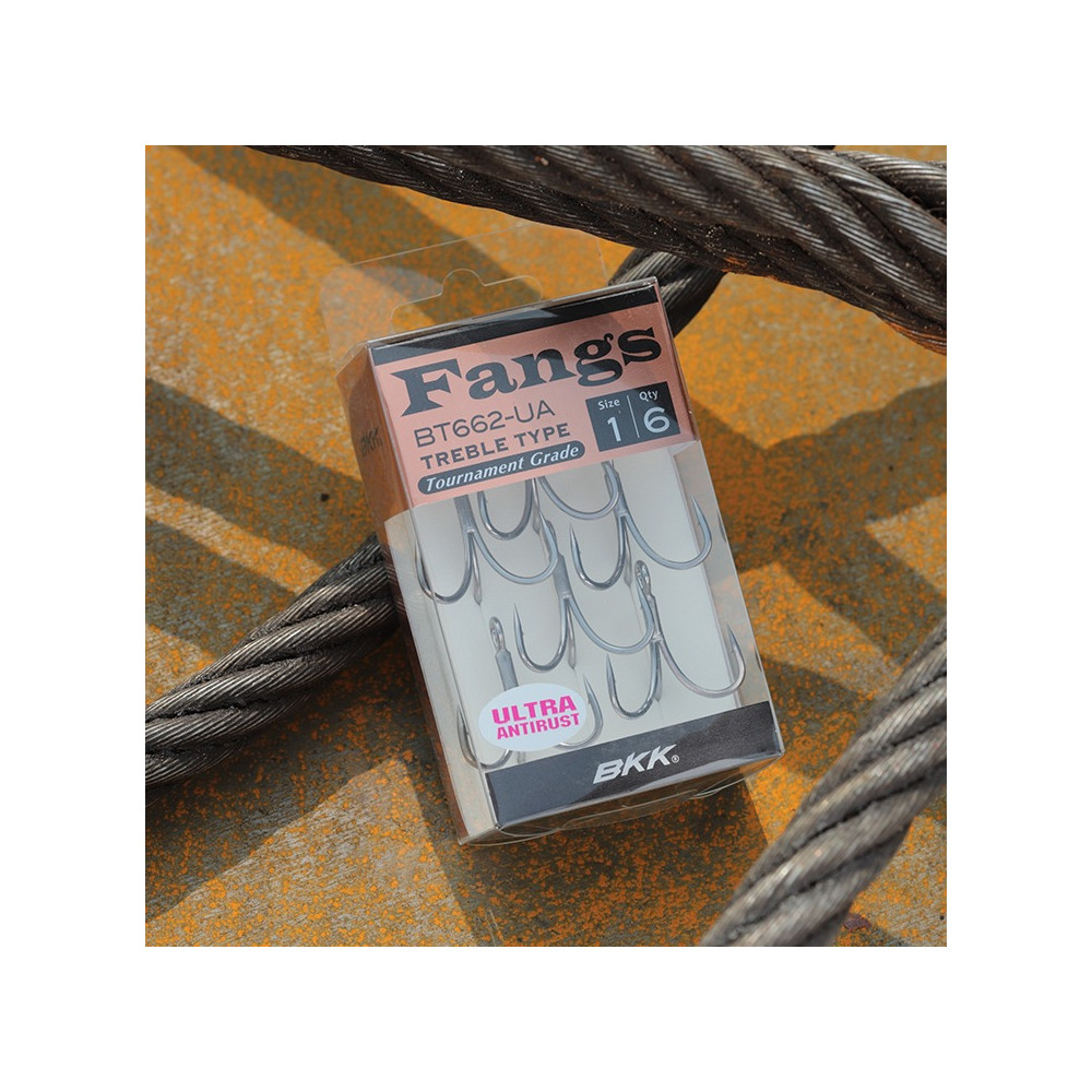 BKK FANGS BT-662-UA - Wzmacniane kotwice przeznaczone do zbrojenia przynęt do połowu dużych i silnych ryb. Jeżeli szukacie produktu, który pozwoli na wiele sezonów łowienia okazowych łososi, boleni, brzan i pstrągów to kotwice Fangs 2x będą doskonałym i bezpiecznym wyborem.