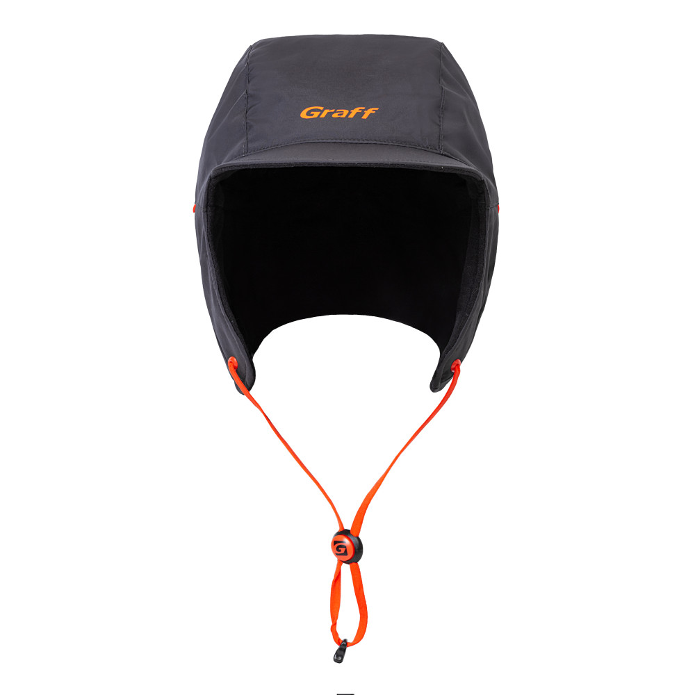 Zimowa czapka Graff zapewniająca komfort termiczny przy ekstremalnie niskich temperaturach. Została wykonana z dwuwarstwowej membrany BRATEX® o podwyższonych parametrach paroprzepuszczalności i wodoszczelności (8000 mm H2O/8000 g/m2/24 h). Zewnętrzna powierzchnia tkaniny została pokryta specjalną apreturą DRY CARE®, co powoduje, że czapka jest odporniejsza na zabrudzenia oraz sprawia, że woda swobodniej spływa po jej powierzchni. Wnętrze zostało wyłożone przyjemnym w dotyku polarem. Klapy na uszy można złączyć pod brodą regulowanym paskiem, aby czapka lepiej przylegała do głowy.