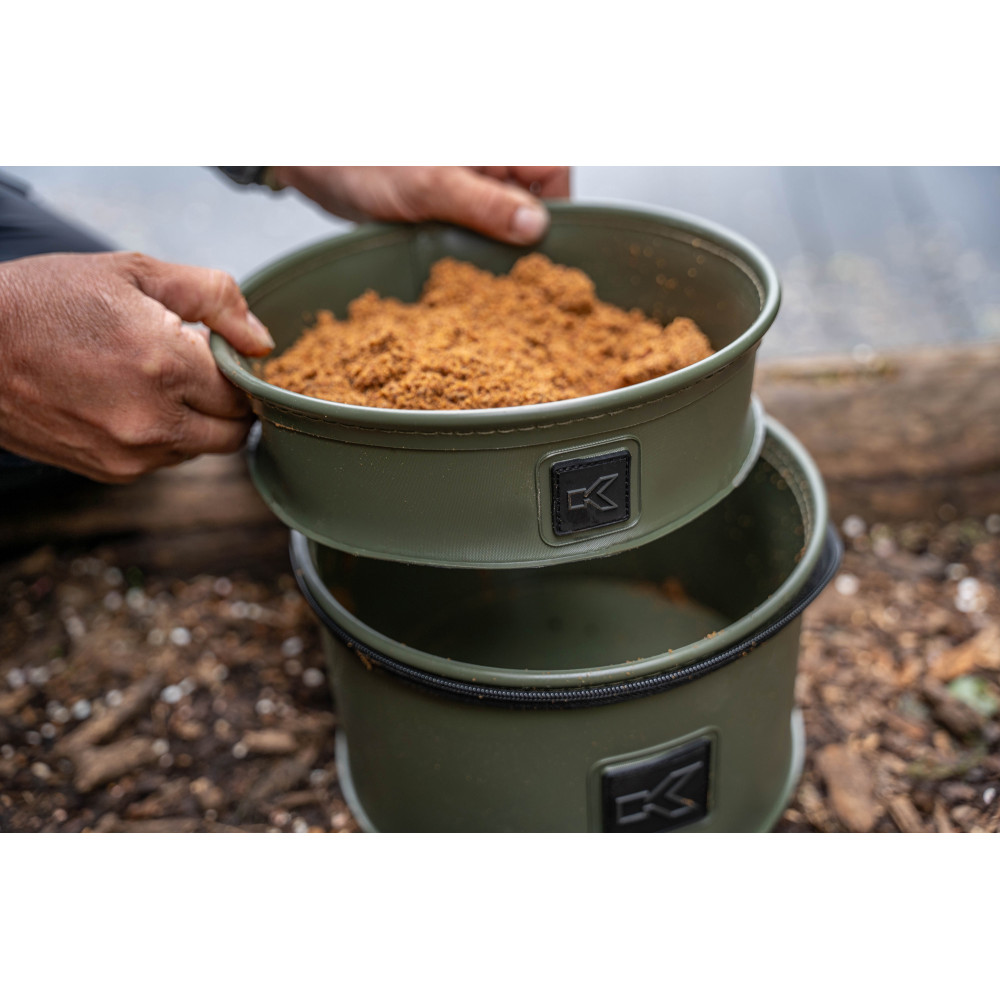 K0290091 Zestaw z sitkiem Korum EVA Riddle Set - 3mm - ulepszony zestaw pojemników do przygotowania zanęty zawiera nowe, zgrzewane sito z gumowej siatki 3 mm, jest idealny rozmiar do zastosowania z zanętami na duże ryby oraz przynętami naturalnymi, takimi jak białe i czerwone robaki. Posiada uchwyt do przenoszenia. Umieszczone wewnątrz sito doskonale układa się w górnej części, aby umożliwić swobodne przejście robaków i przecieranie zanęty.