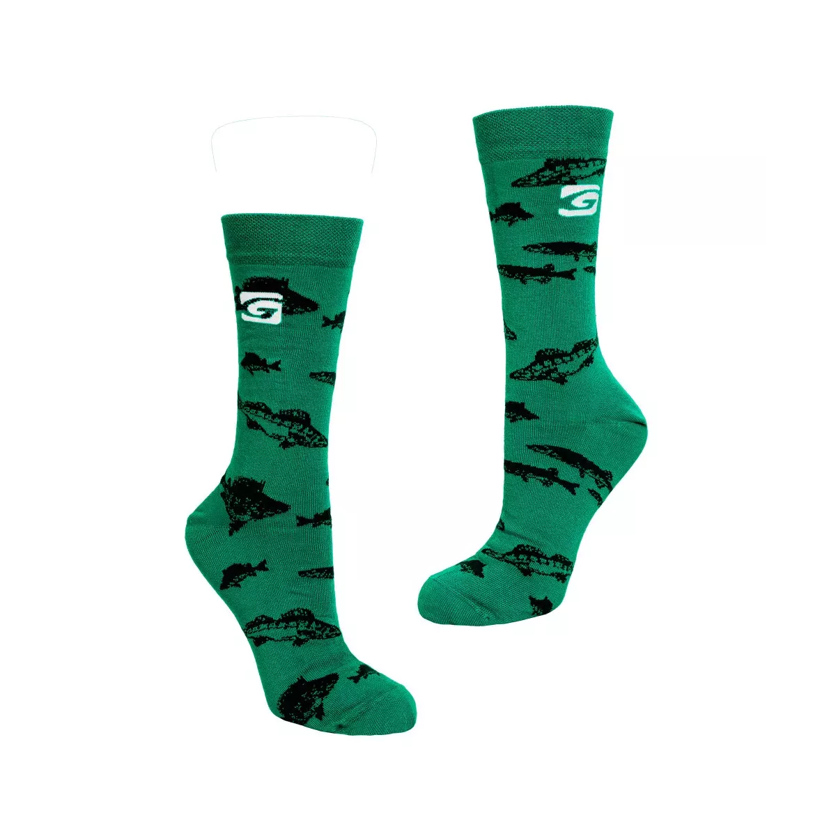 Skarpety Graff 064 - wykonane z naturalnej bawełny o podwyższonej wytrzymałości na ścieranie, posiadają naturalne właściwości oddychające oraz zapewniają izolację cieplną i uczucie suchości. Specjalnie zaprojektowany kształt zapobiega zsuwaniu się skarpetek, a ich wysokość gwarantuje ochronę przed obtarciami, nawet przy noszeniu wysokich butów. Motyw skarpetek to połączenie wód oraz ryb słonowodnych i słodkowodnych. Skarpetki są pakowane po dwie pary (2-pack).