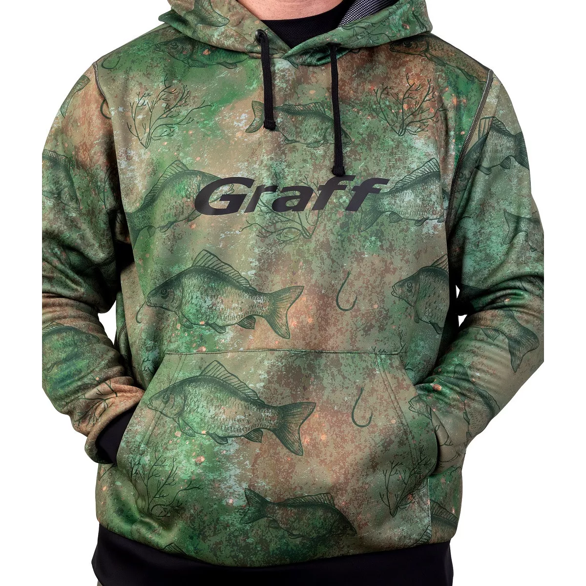Bluza wodoodporna Graff posiada właściwości wiatroodporne, co oznacza, że chroni Cię przed wiatrem, który często towarzyszy wędkarzom podczas wędkowania. Klasyczny, luźny krój w stylu "kangurka" gwarantuje swobodę ruchów i wygodę podczas zarzucania wędki, holowania ryb czy obsługi sprzętu. Nie krępuje ruchów i zapewnia pełną swobodę. Bluza została zaprojektowana z myślą o intensywnym użytkowaniu. Wytrzymały materiał będzie Ci służył przez wiele sezonów wędkarskich. Nie tylko funkcjonalność jest ważna. Ta bluza ma również atrakcyjny wygląd, który sprawia, że świetnie prezentuje się zarówno na wodzie, jak i poza nią. Dostępna jest w różnych kolorach oraz grafikach, więc z łatwością dopasujesz ją do swojego stylu.