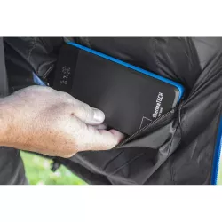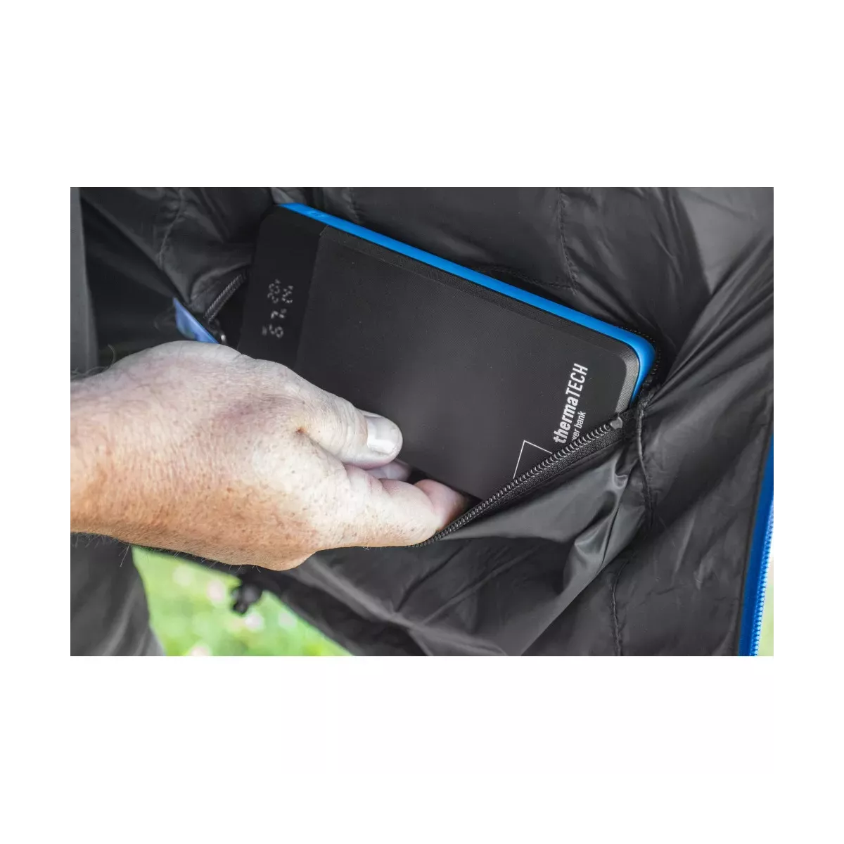P0200448 Powerbank Preston Termatech - 20000 mAh - Idealny do zasilania każdego ogrzewanego produktu Preston Thermatech. Powerbank Preston Thermatech 20000mAh został zaprojektowany do współpracy z urządzeniami potrzebującymi dużej mocy, takimi jak kurtka Thermatech Heated Softshell, która wymaga wyjścia USB-C 20V/2A, ale z powodzeniem może być również używany do zasilania urządzeń o niższej mocy z wykorzystaniem obu wyjść USB. Powerbank jest wyposażony zarówno w wyjścia USB, jak i USB-C, dzięki czemu nadaje się do zasilania różnych urządzeń nie tylko nad wodą. Z przodu znajduje się duży wyświetlacz, na którym wyraźnie widać pozostały poziom energii, co jest niezwykle przydatne podczas użytkowania oraz ładowania.