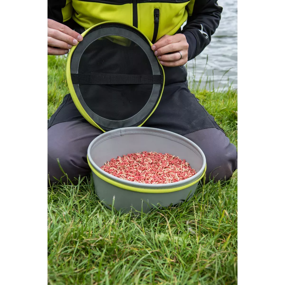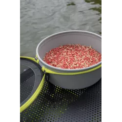- Wieczko z drobnej siatki umożliwia przepływ powietrza, aby przynęty były świeże