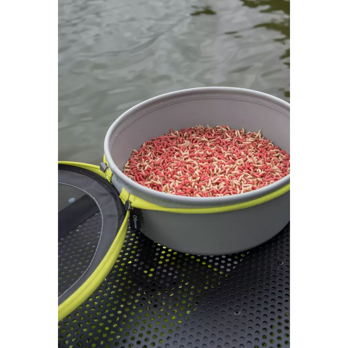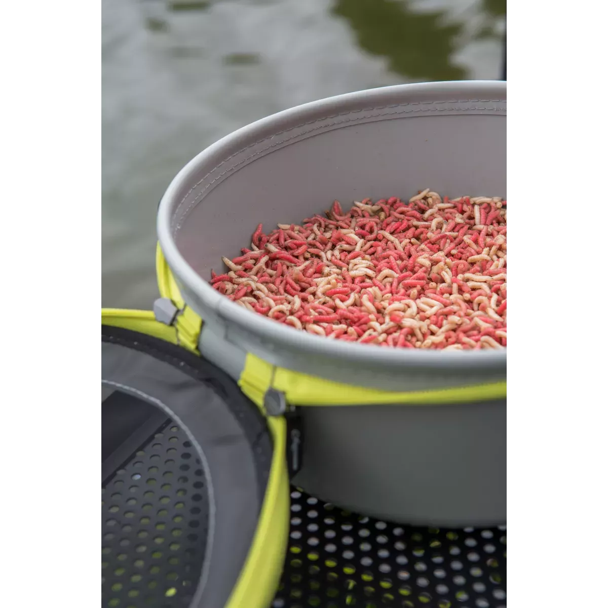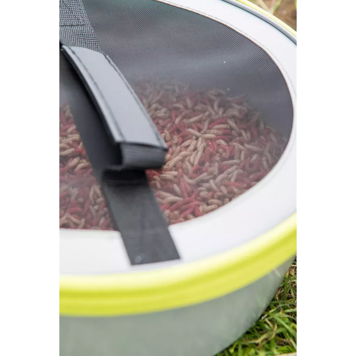 - Wieczko z drobnej siatki umożliwia przepływ powietrza, aby przynęty były świeże