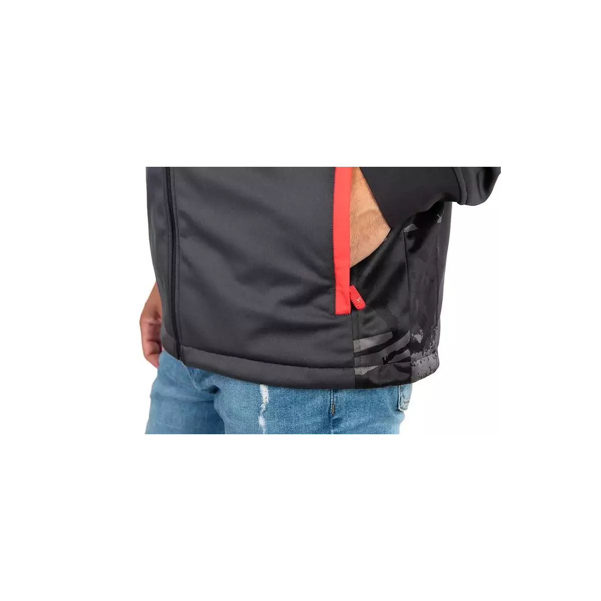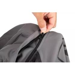 - Dwie zapinane na zamek boczne kieszenie oraz kieszeń na telefon na piersi