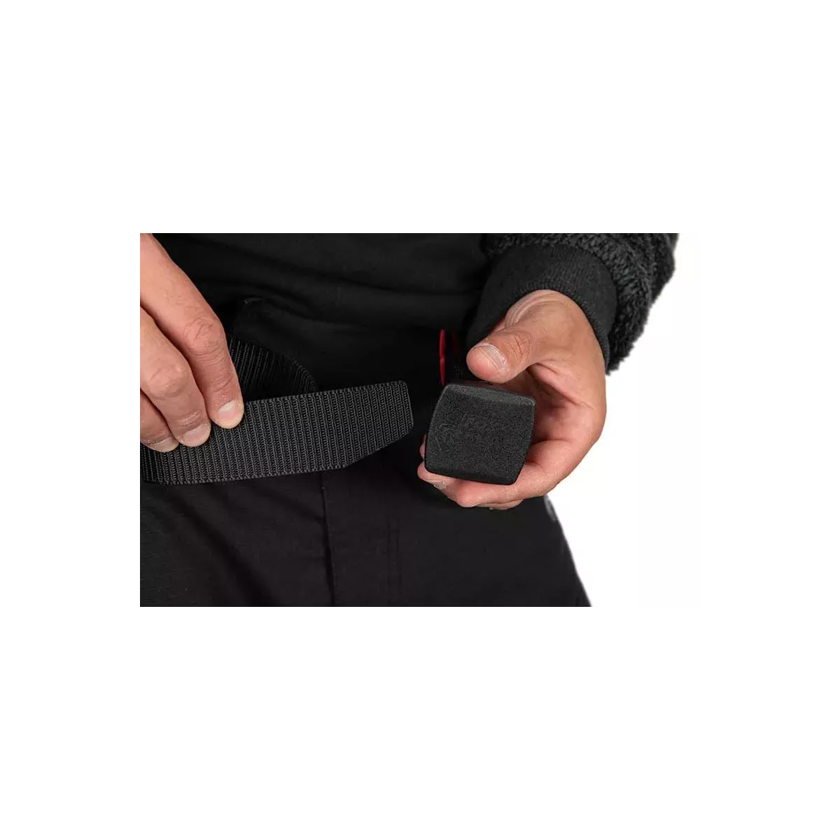 - Profilowana sprzączka z zamknięciem dla bardzo mocnego trzymania po zapięciu pasa