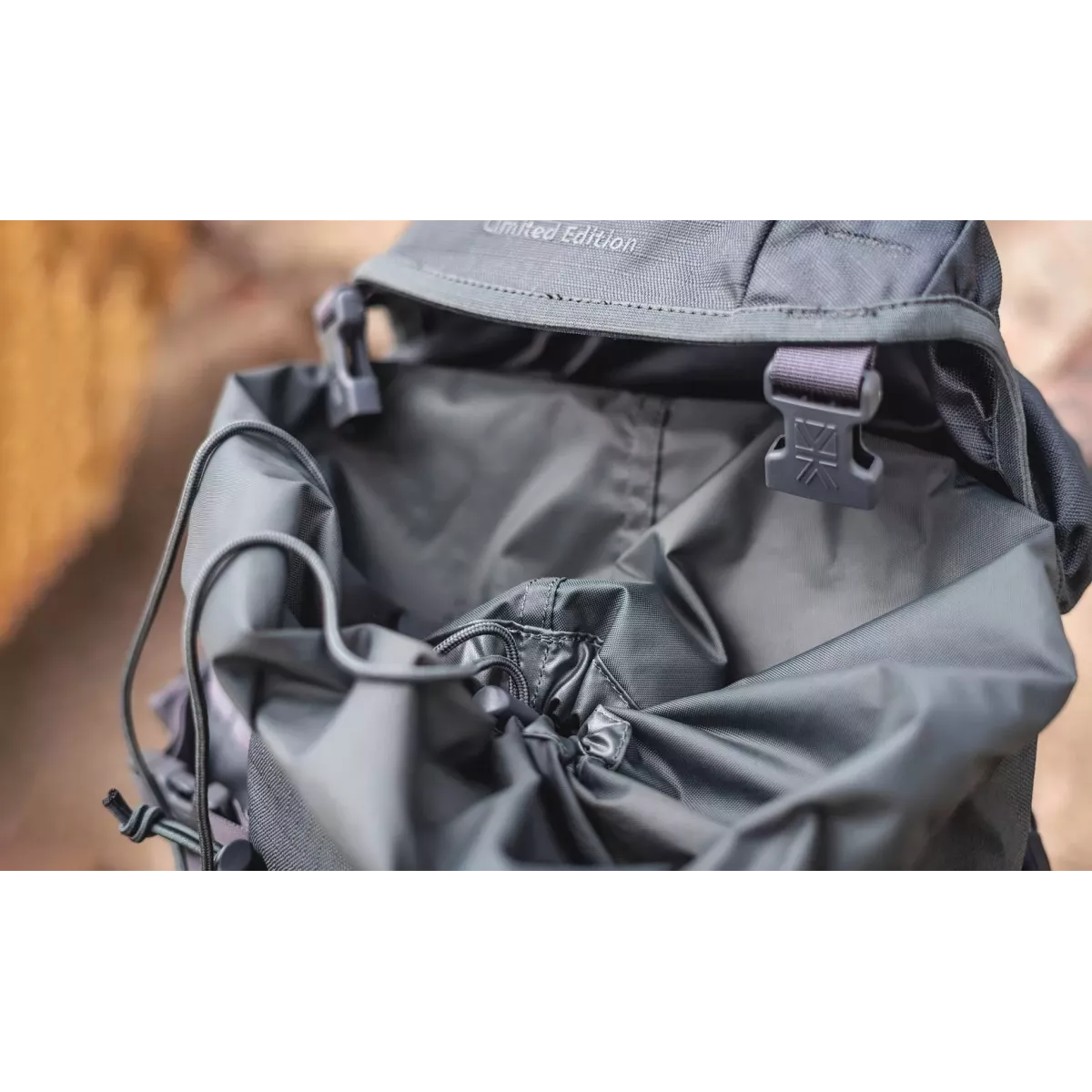 Plecak to „top loader” zapewniający bezpieczną przestrzeń do przechowywania sprzętu i sprzętu. Na pokrywie znajduje się system nośny ze sznurkiem, który jest przydatny do zabezpieczania lekkiej odzieży, takiej jak płaszcz, na przykład podczas podróży. Kieszeń w klapie ma zamki błyskawiczne YKK i zapewnia łatwy dostęp do telefonów, akcesoriów GPS, portfela, latarki lub czegokolwiek innego, czego potrzebujesz szybko znaleźć w podróży.