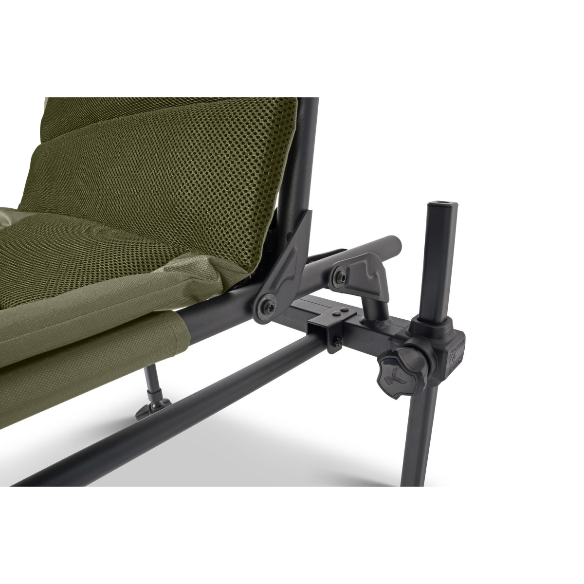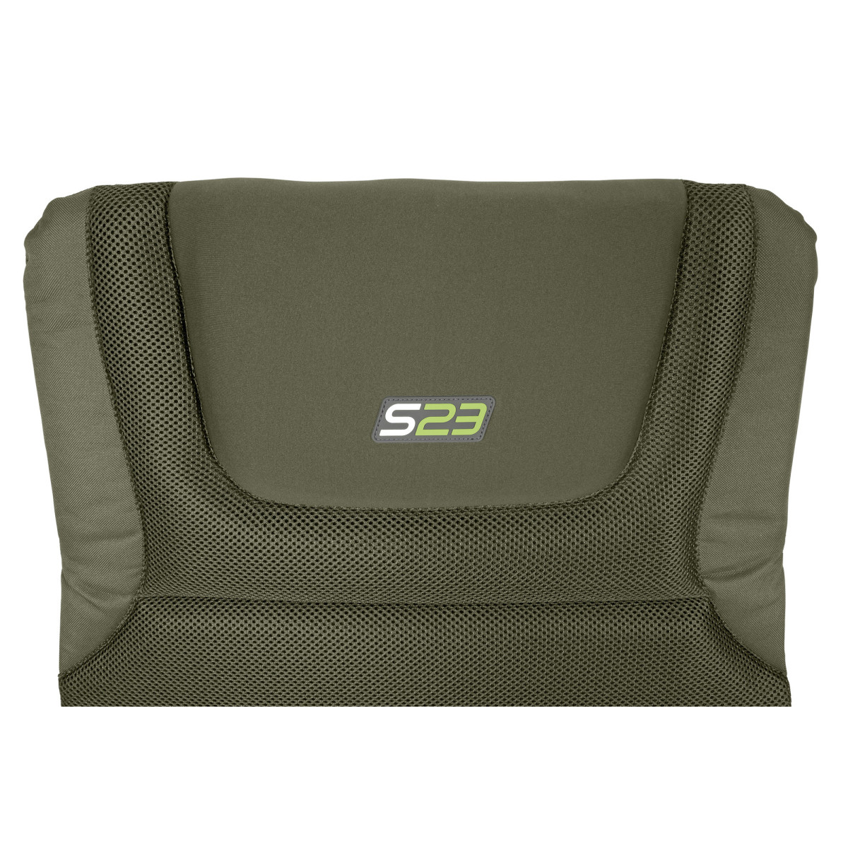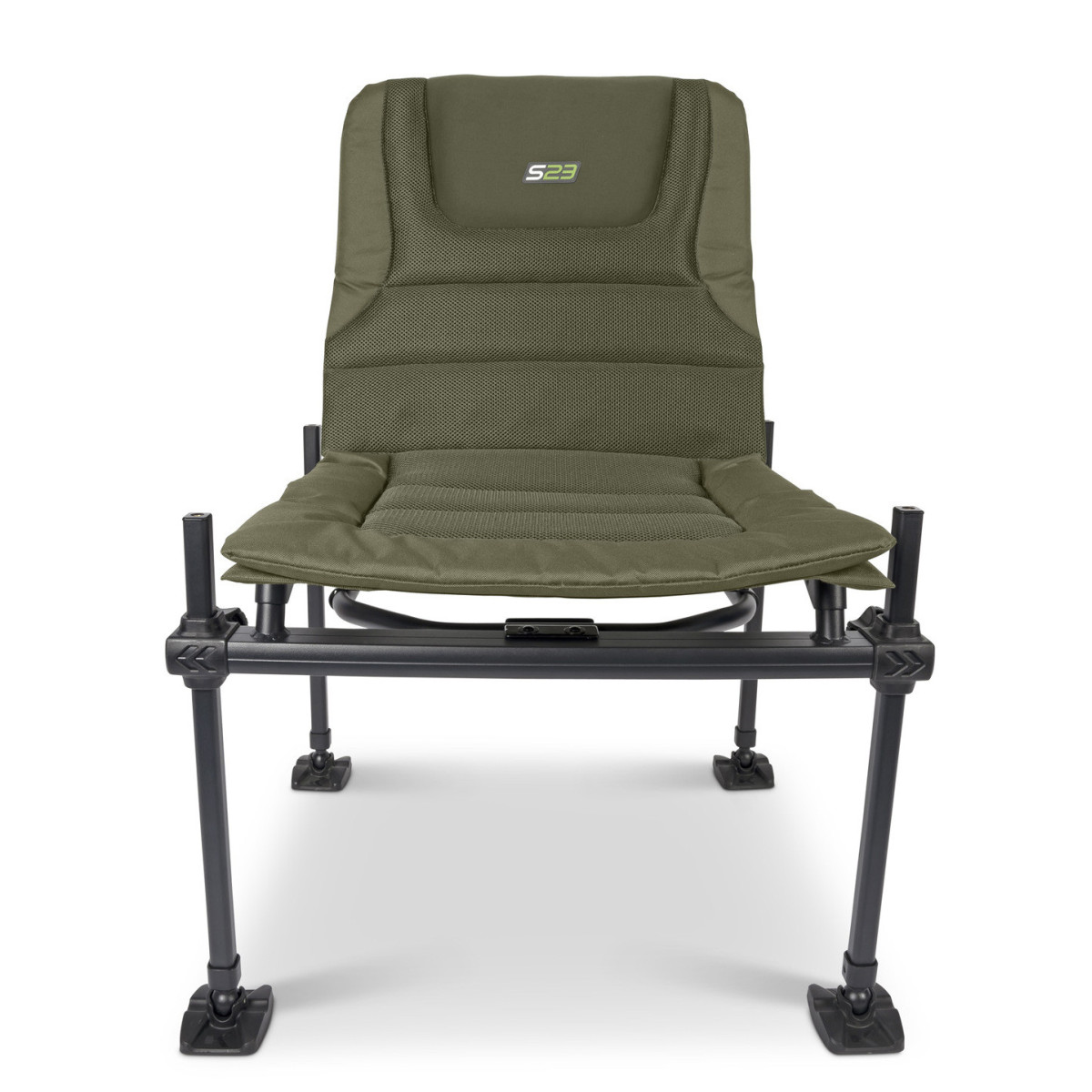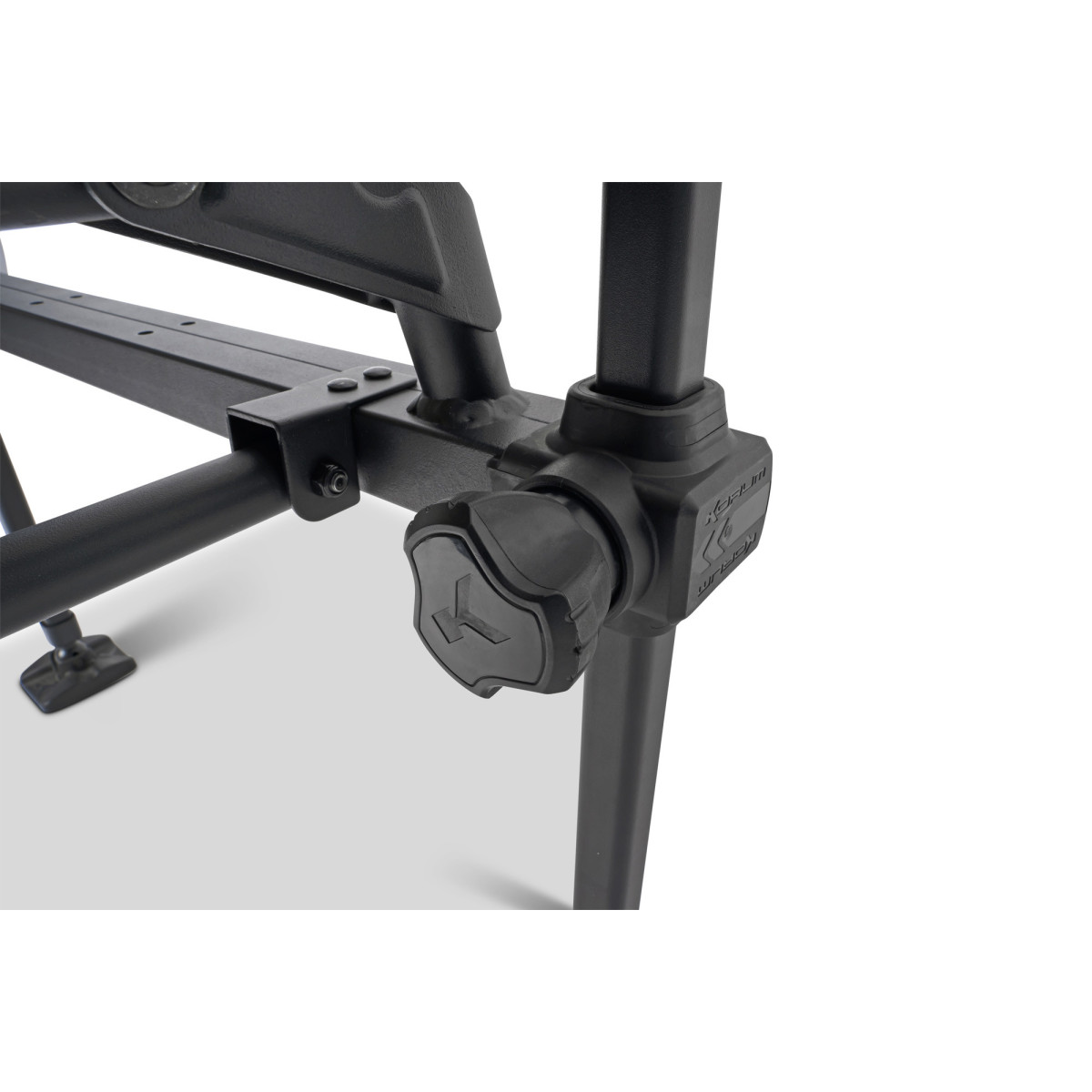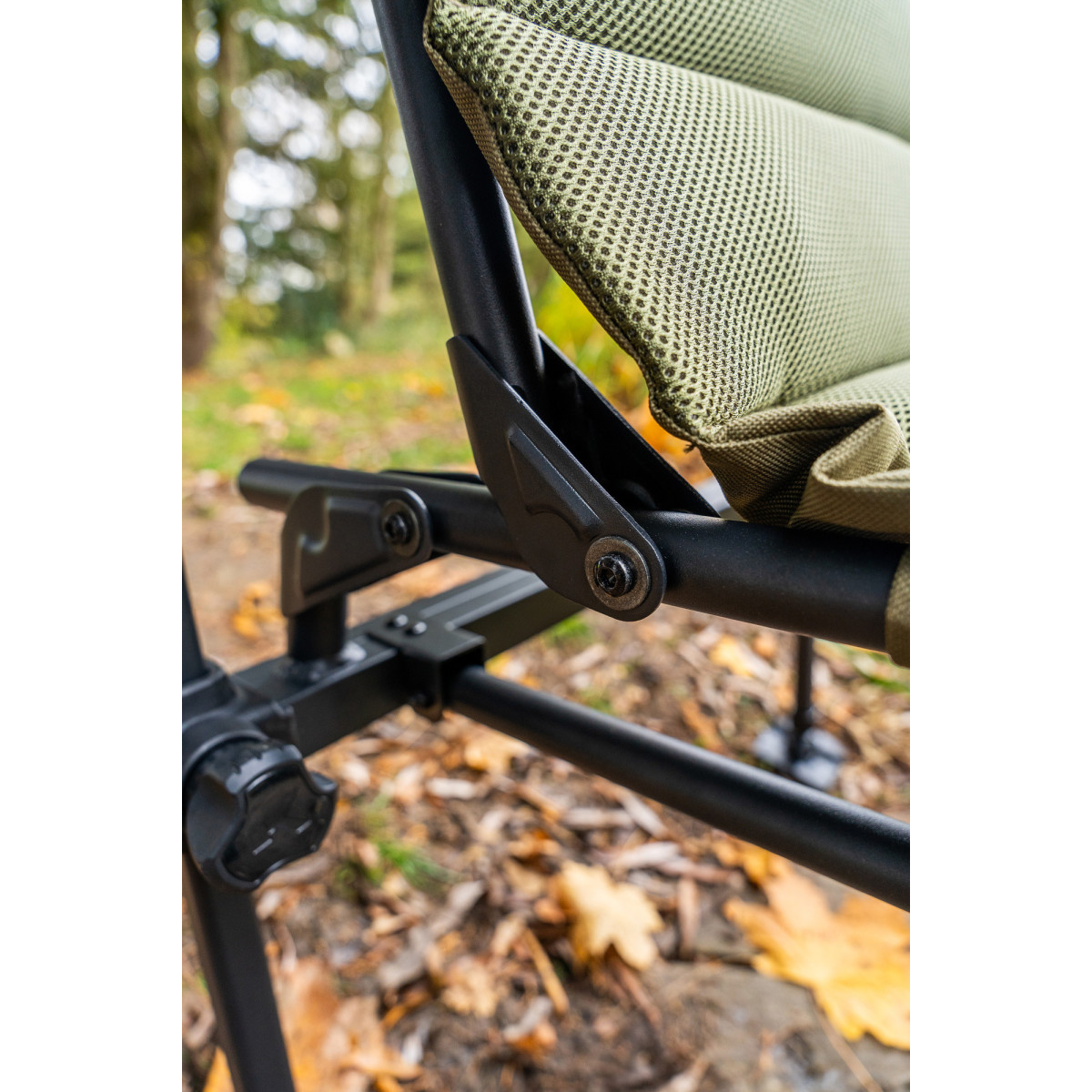 Fotel Korum S23 wykorzystuje opatentowaną, pionową konstrukcję nóg, co zapewnia niezwykłą stabilność. Szeroki stopki zabezpieczą krzesło przed wbijaniem się w grunt.
