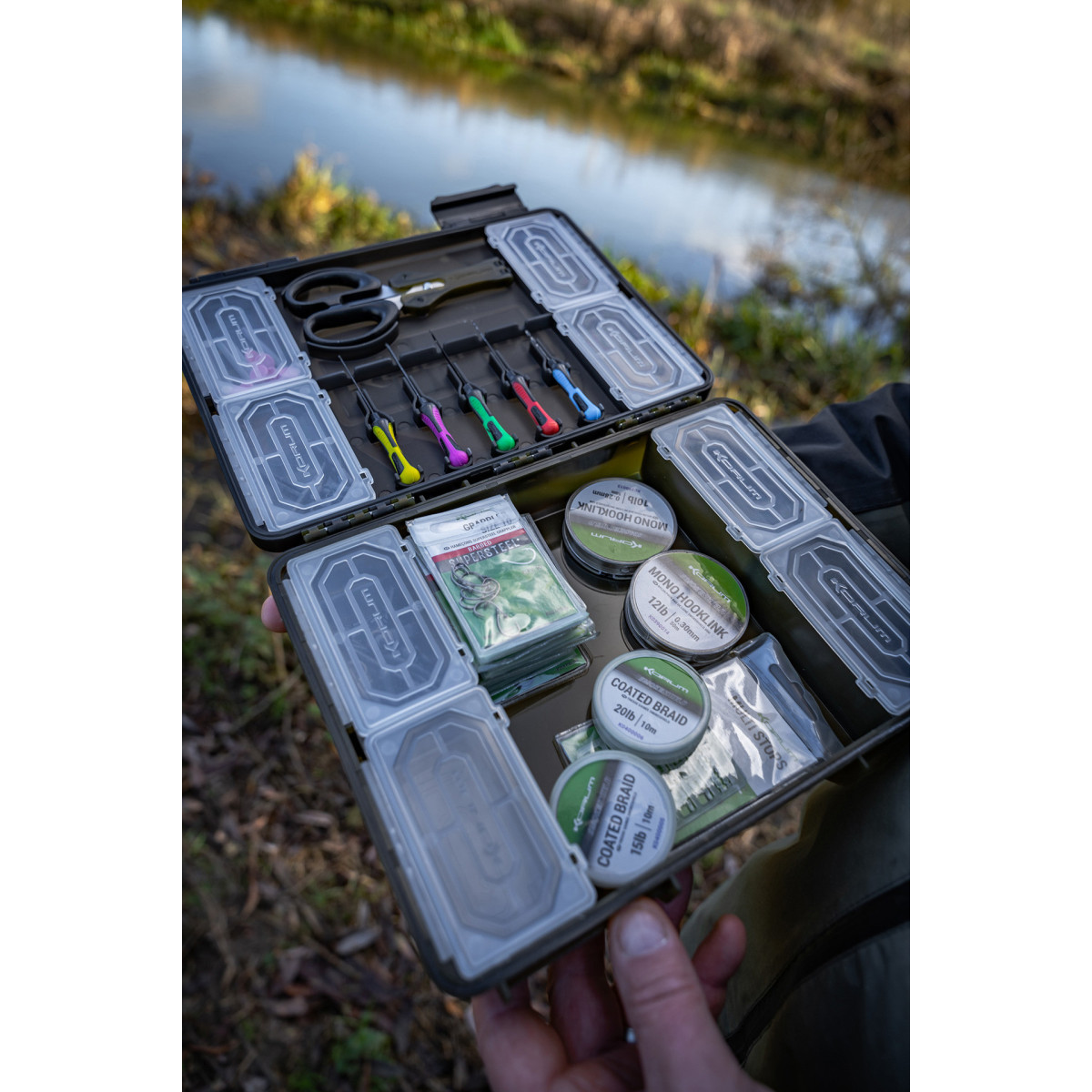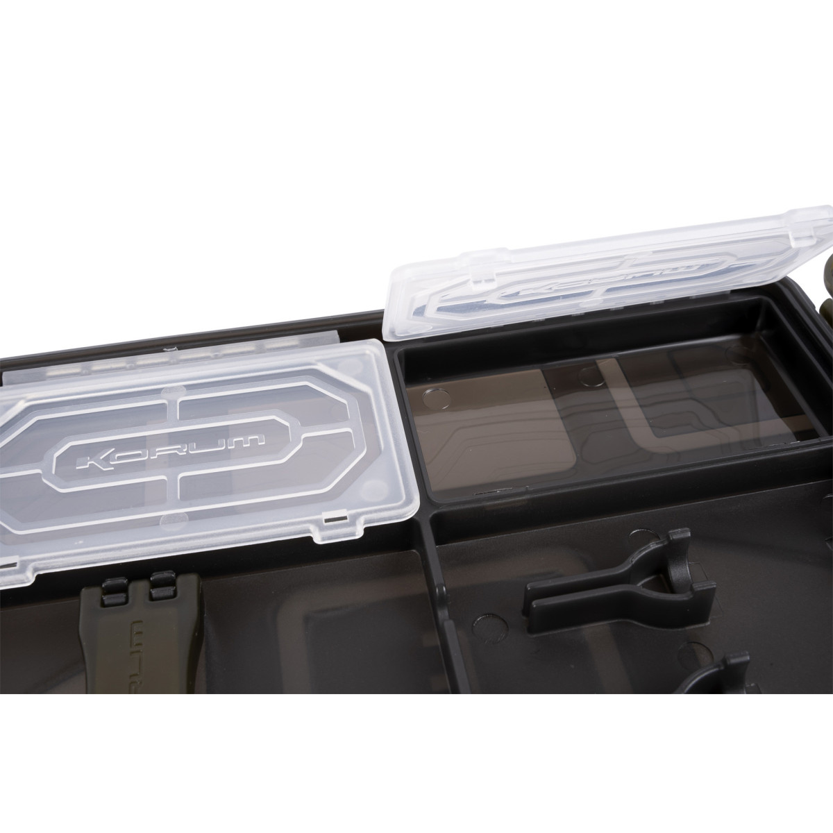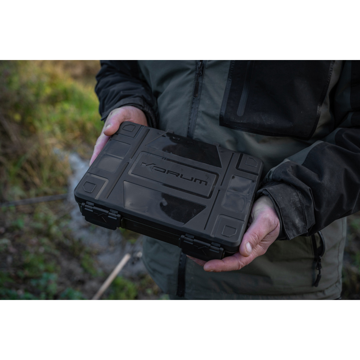 Pudełko Korum Slim Blox - Loaded K0290095 - nowy pomysł na przechowywanie sprzętu wędkarskiego, skierowany do wszechstronnych wędkarzy. Tak skonstruowany, aby zmieścić w jednym, dobrze zorganizowanym miejscu wszystko to, czego potrzebujesz. Model Slim ma centralny obszar roboczy i więcej wbudowanych przegródek na akcesoria. Wszystkie narzędzia do przynęt można zatrzasnąć w pokrywie. Idealne dla wędkarzy którzy potrzebują minimalną ilość sprzętu lub jako drugie pudełko na sprzęt wędkarski.