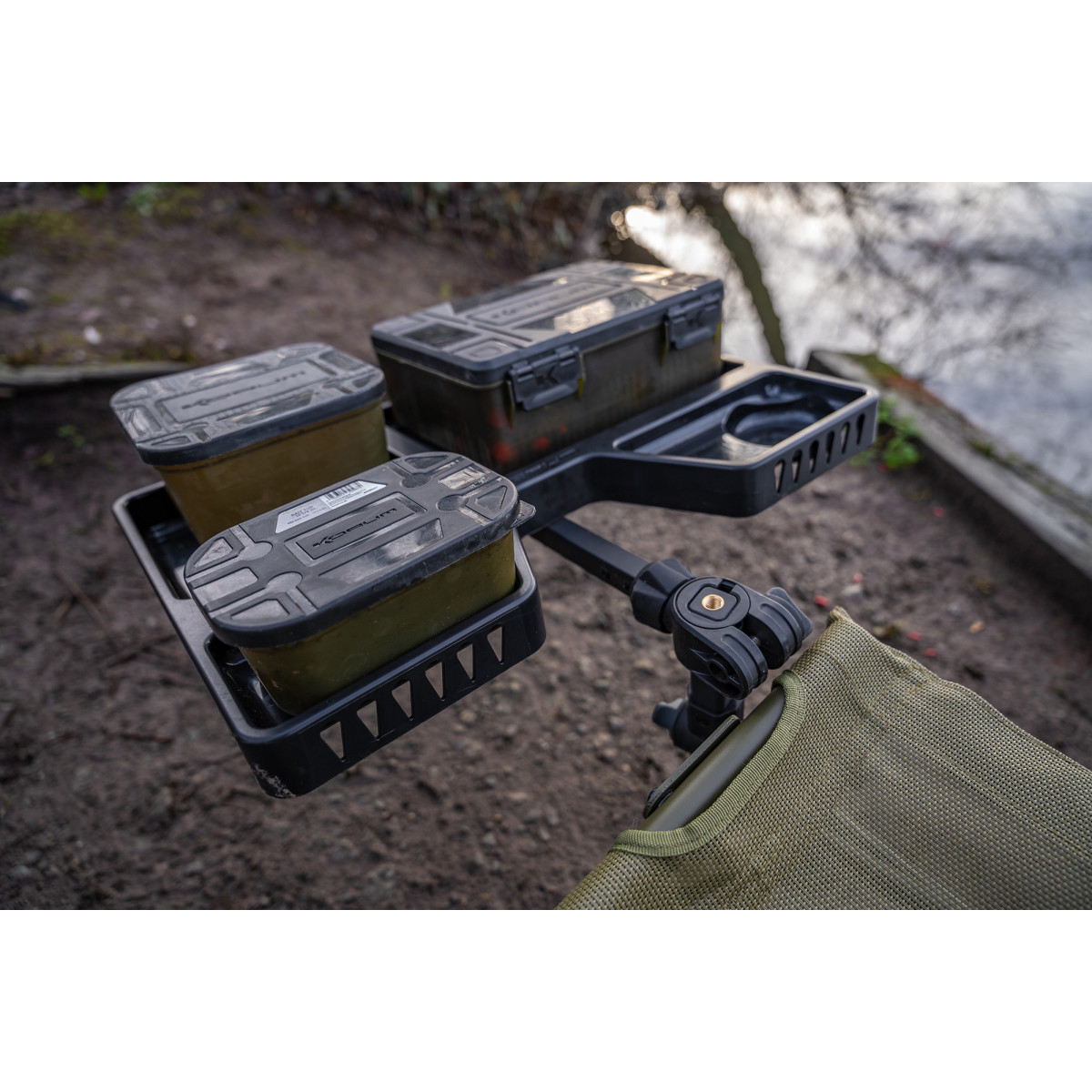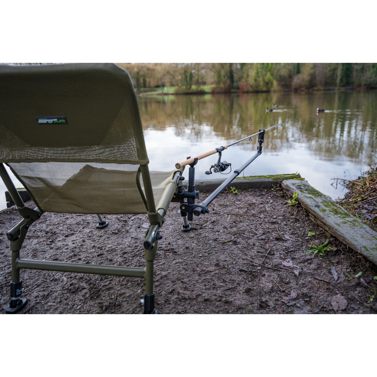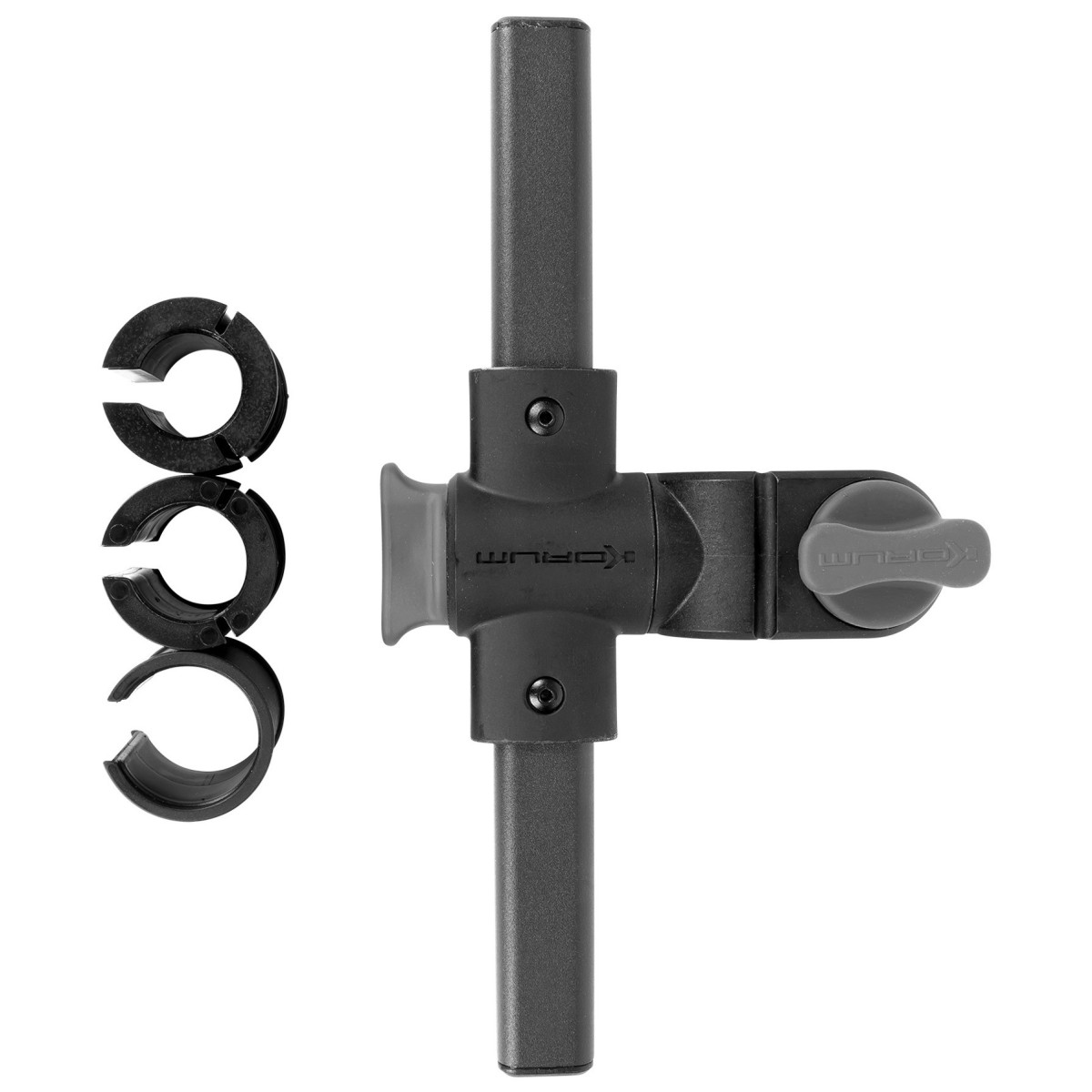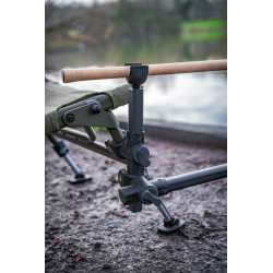 Uchwyt Korum Any Chair Adaptor jest regulowany, można go ustawić pod dowolnym kątem. Obrotowa regulacja 360 stopni umożliwia wypoziomowanie tacy bocznej zamontowanej na pochylonych nogach krzesła. Może pozostać przymocowany do fotela, co ułatwia przechowywanie i transport. Posiada wewnętrzne gwinty do bezpośredniego mocowania podpórek pod wędkę i innych akcesoriów. Punkty mocowania są dłuższe, aby pomieścić więcej akcesoriów. Zestaw zawiera okrągłe wkładki 30 mm, 25 mm, 23 mm oraz kwadratową 23 mm.