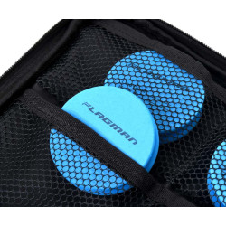 Portfel na przypony Flagman Pro Competition Soft Rig Case FPC019 - kompaktowy portfel na małe akcesoria wędkarskie i przypony. W lewej komorze, małe kieszonki z siatki mieszczą 6 szpul - o średnicy 65 mm, wykonanych z EVA - do przechowywania gotowych przyponów. Prawa komora Flagman Pro Competition Soft Rig Case & 6 EVA Spools posiada dwie siatkowe kieszenie z elastycznymi taśmami i dużą kieszeń na zamek błyskawiczny. Flagman Pro Competition Soft Rig Case & 6 EVA Spools posiada gęstą wyściółkę z materiału syntetycznego, która zachowuje swój kształt i zapewnia niezawodną ochronę zawartości. Wykonany jest z wytrzymałego, wodoodpornego materiału Oxford 600D i zamykany na dwukierunkowy zamek błyskawiczny.