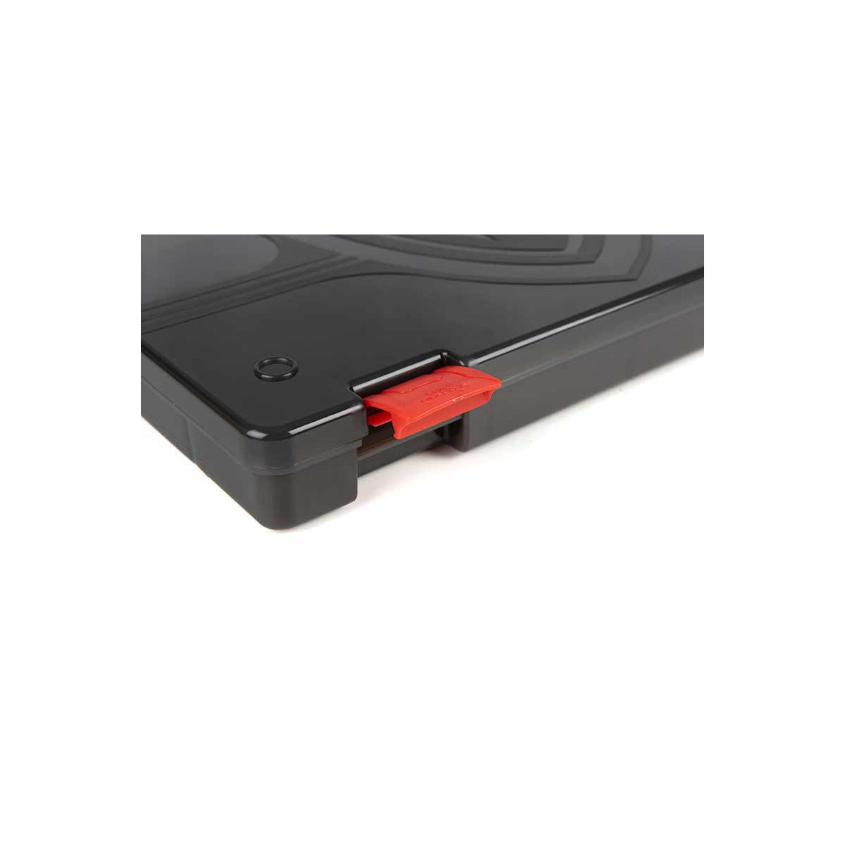 - Bezpieczne zamknięcie za pomocą wysokiej jakości, czerwonych zatrzasków Fox Rage